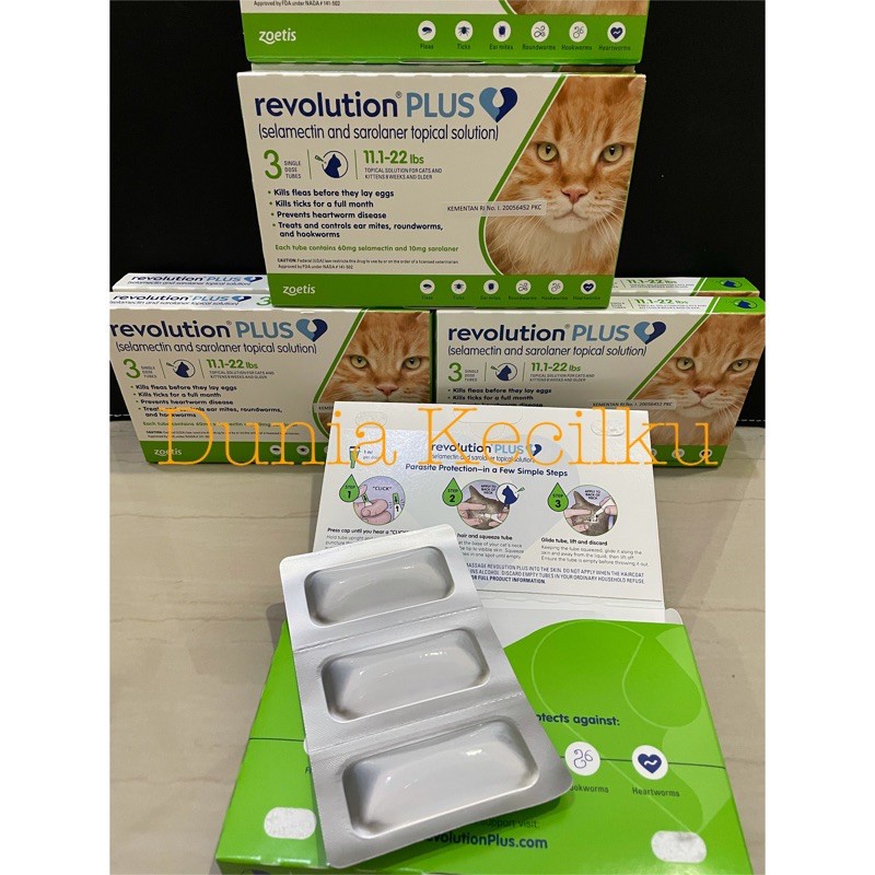 Revolution Plus Green 1 Ml Obat Cacing Dan Kutu Kucing (Bb 5 - 10 Kg)