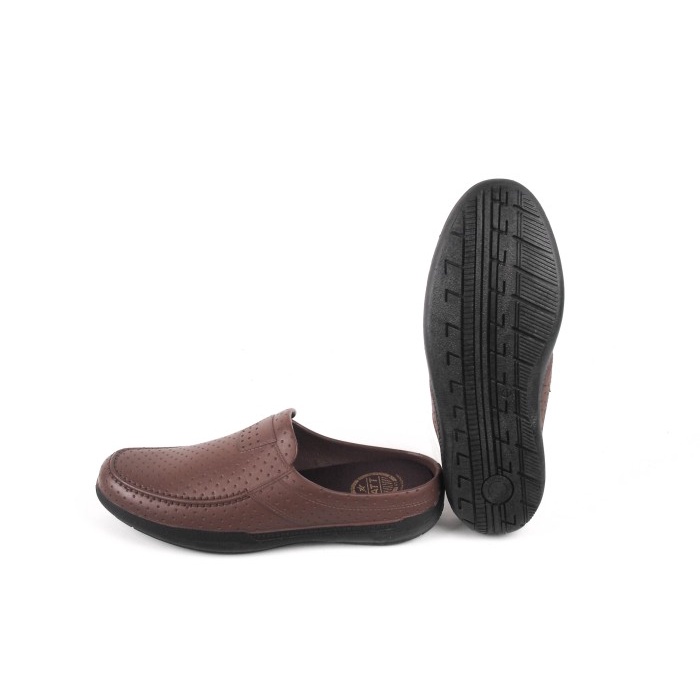 Sepatu Slip On Karet Pria Coklat Tua Fashion Casual Formal Nyaman Ringan Lentur Lokal Anti Slip & Air