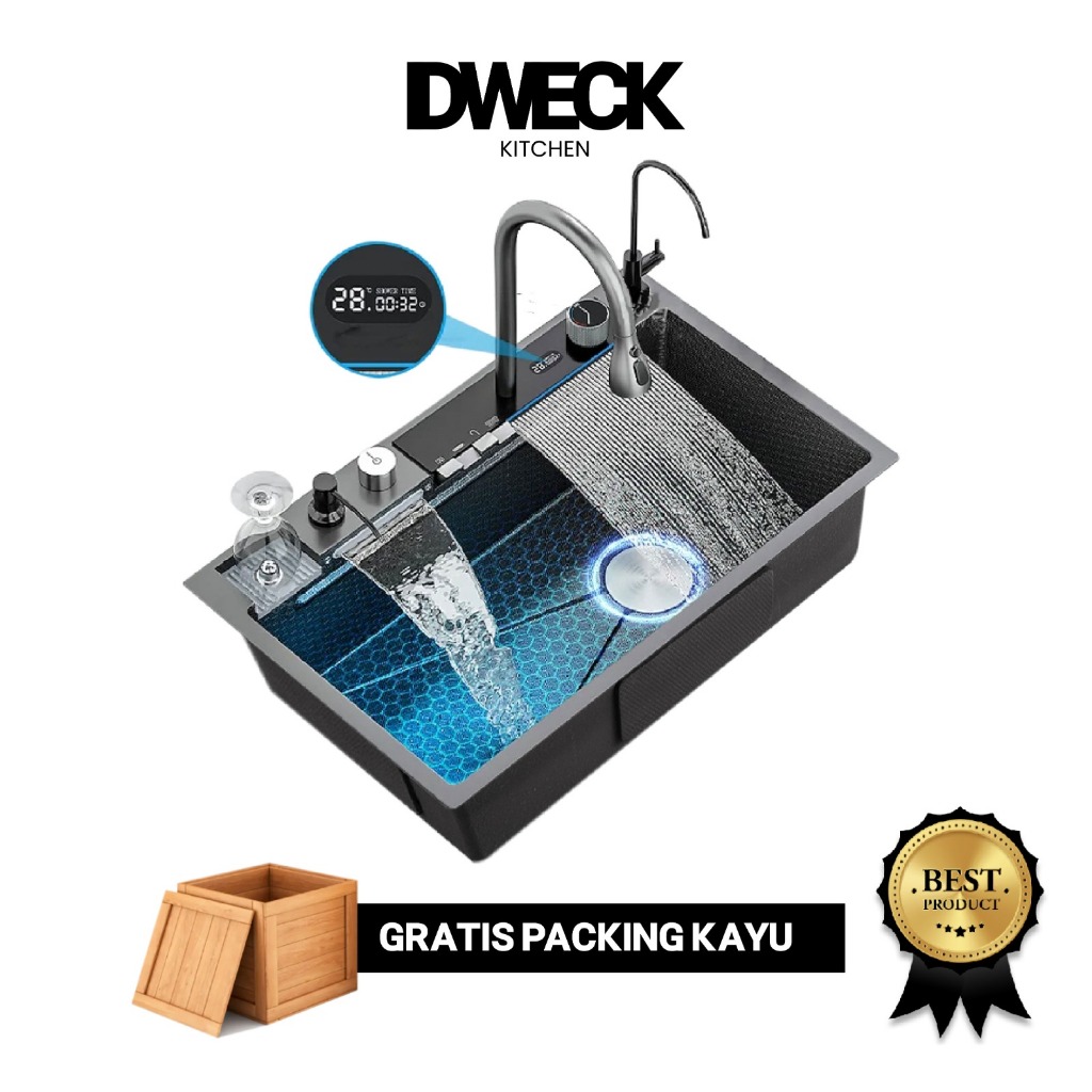 Kitchen Sink Luxury Stainless Black Digital Led / Sink Waterfall Led 1 Bowl