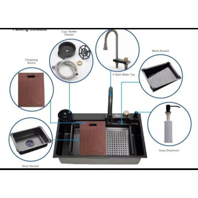Kitchen Sink Modern Stainless stell BLACK LUXURY New Fitures 7545 Bak Cuci Piring Viral HITAM