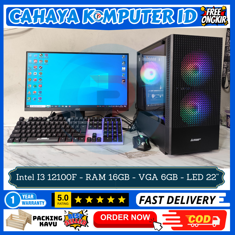PC Gaming Editing Intel Core I3 12100F Gen12 Ram 16GB SSD 256GB VGA Gtx 1660 Super 6GB LED 22 Inch