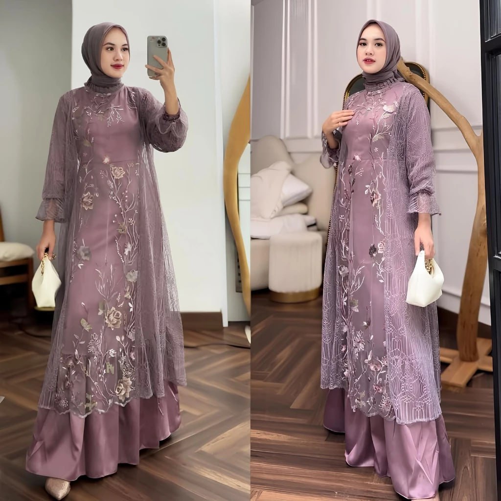 Niss Batik Gamis Lebaran 2026 el Gamis Terbaru Sarimbit Bahan Adem Brukat Satin Zeya Dress Gamis Maxi