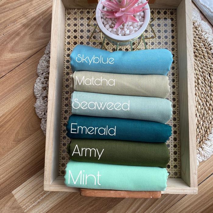 Army, Ashgrey, Ashpurple, Babypink, Black, Blassom, Brokenwhite, Cokies, Darkgrey, Draktan, Dusty, Dusty purple, Emerald, Espresso, Frappucino, Grey, Hazelnut, Ivory, Latte, Lime, Lotus, Maroon, Matcha, Milktea, Mint, Misty, Mocca, Mulberry, Mustard, Purple, Sage, Seaweed, Silver, Skyblue, Smokegrey, Stealblue, Terecotta, White, burgundy
