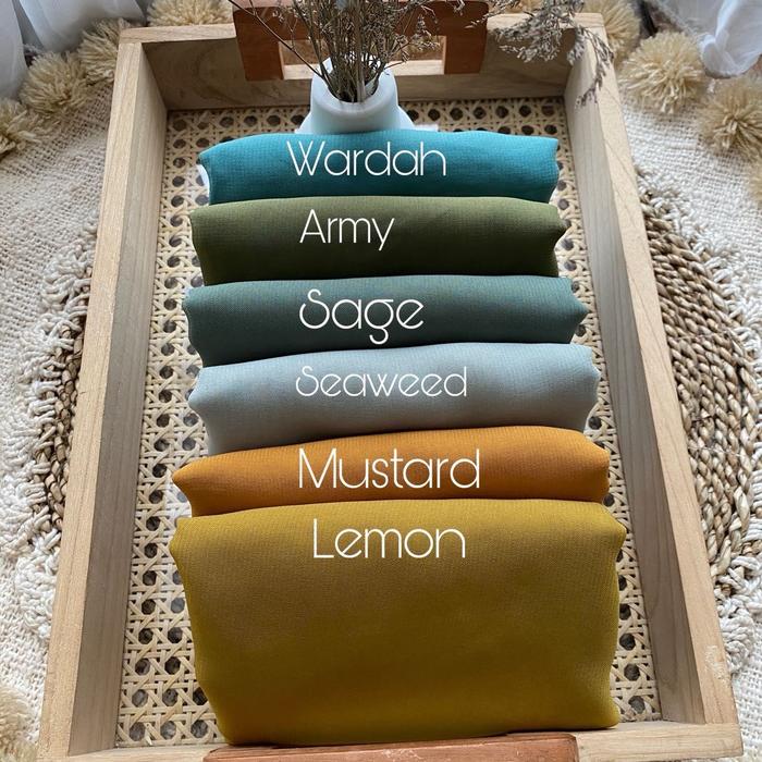 Burgendy, Lemon, Milktea, Mustrad, White, army, ashgrey, baby pink, babyblue, beige, black, broken white, brownie, choco, cinnamon, coffe, cream, darkgrey, denim, dove, dusty, dustypink, espresso, frapuchino, fuchsia, grey, hazelnut, maple, maroon, mocca, navy, oat, peanut, purple, sage, seaweed, sky blue, taro, wardah