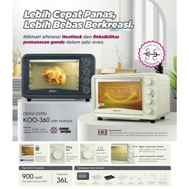 KIRIN OVEN LISTRIK LOW WATT OMNI Oven KOO 360 – 36 Liter Heatlock + Convection