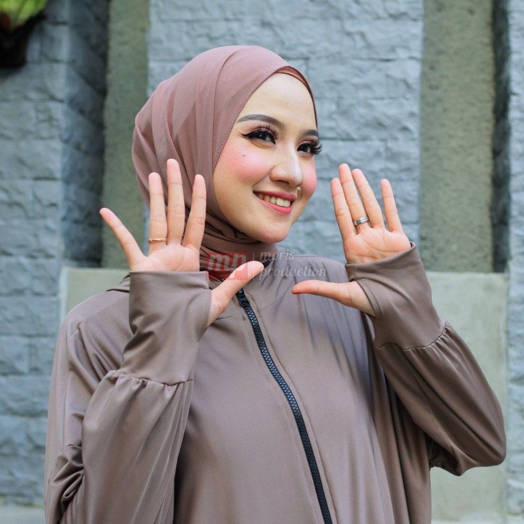Moris Production : Hijab Jaket XL Jumbo Outer Olahraga Oversize Lengan Panjang Nonpad Resleting