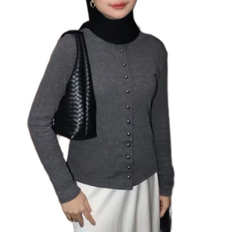 KAIA T0P CARDIGAN BASIC KOREAN STYLE ATASAN DAN BLOUSE LENGAN PANJANG ATASAN RIB KNIT PREMIUM