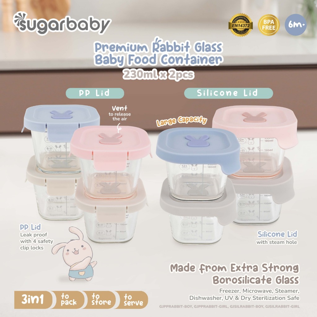 Sugar Baby Premium Glass Jar Baby Food Container 3 pcs BPA FREE / Peralatan Makan Bayi MPASI / Wadah Mangkok Bayi Silico