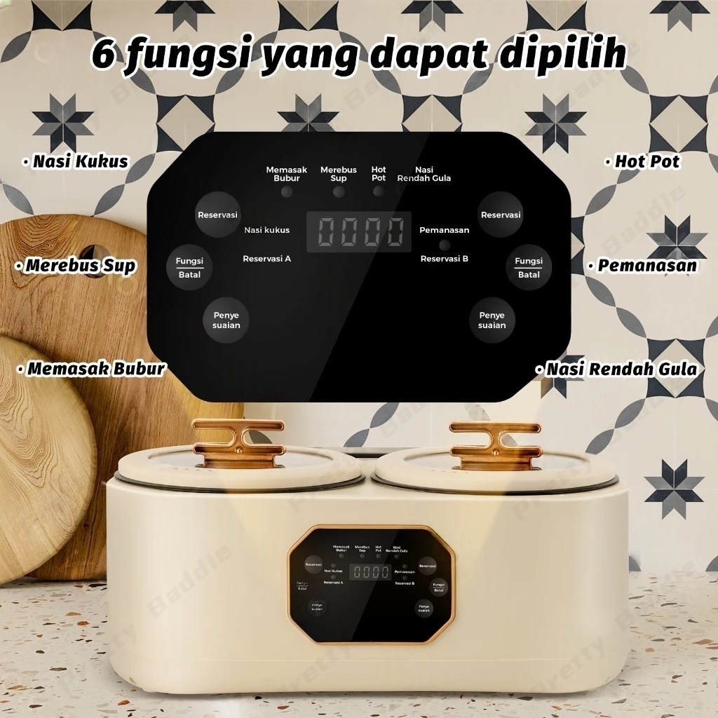 6IN1 Panci Listrik Double Pot Serbaguna 3.6L, Kompor Listrik Multifungsi Lapisan Ganda Cerdas Anti Lengket