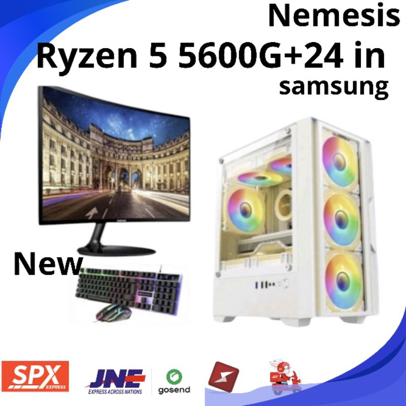 Pc Cpu gaming Amd Ryzen 5 5600G /Ssd 128gb/Ram 16gb Ddr 4/LED 24 INC editing design FULL SET