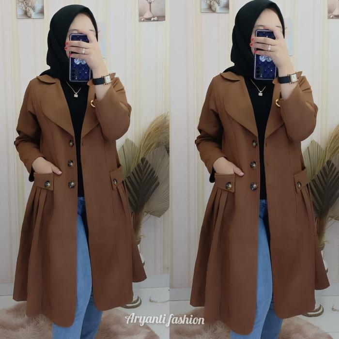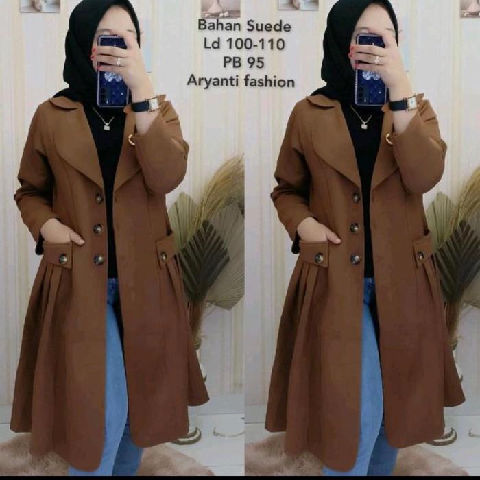 Long Blazer Moza Suede Premium Tebal Ready Stock Sesuai Variasi - Moca, Standar