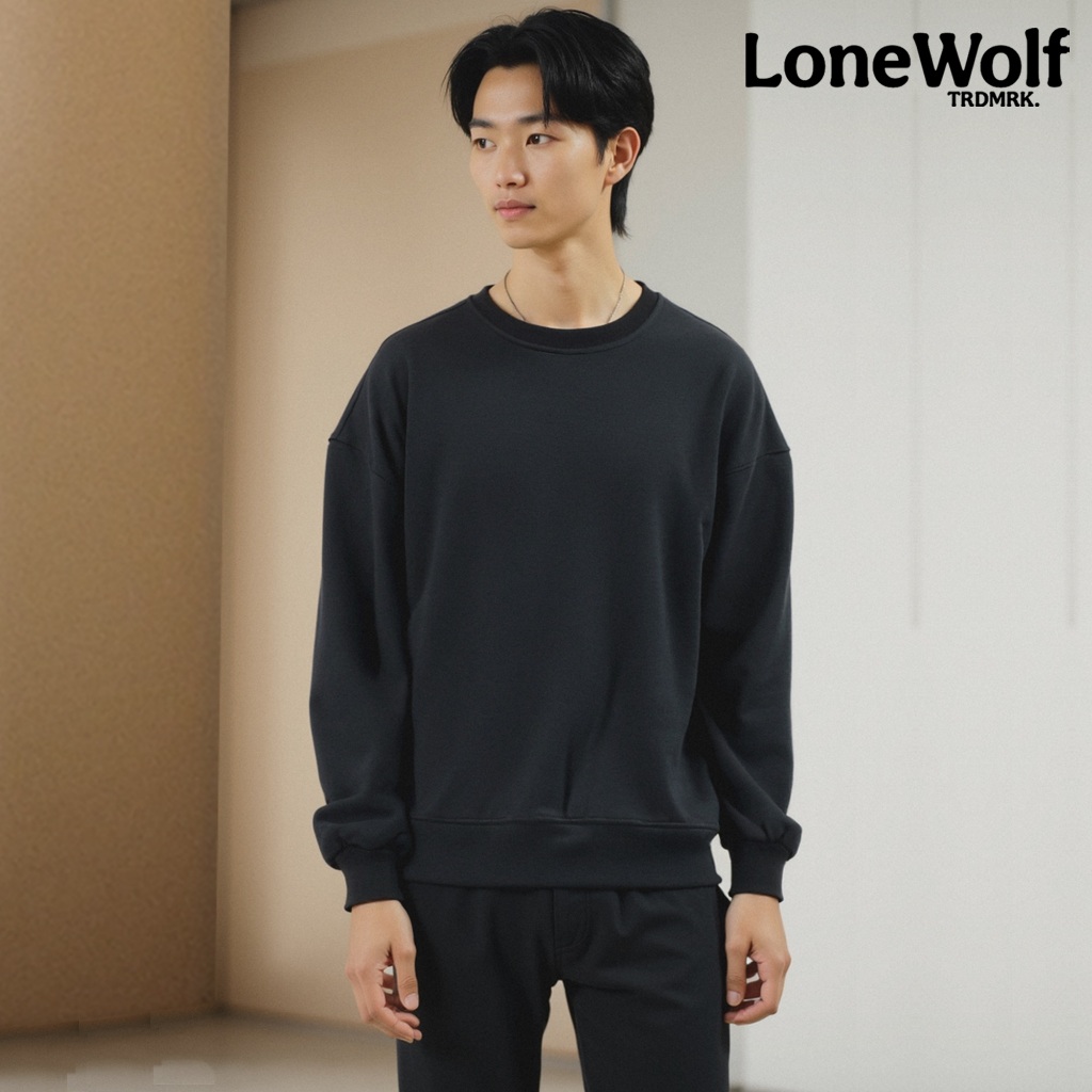 LoneWolf - Katun Basic Crewneck Boxy Oversized Black Pria | Sweater Tebal 300gsm Premium Cotton