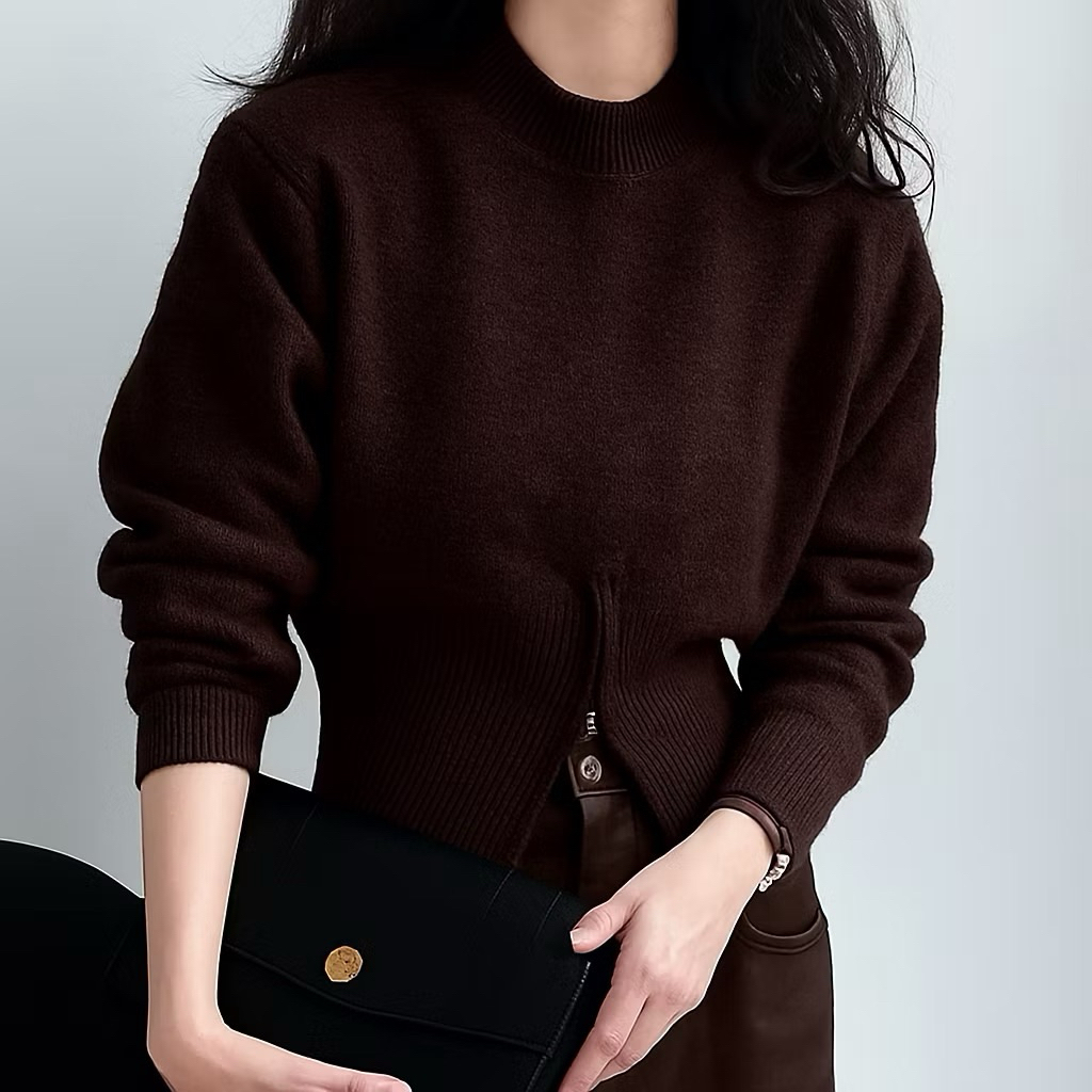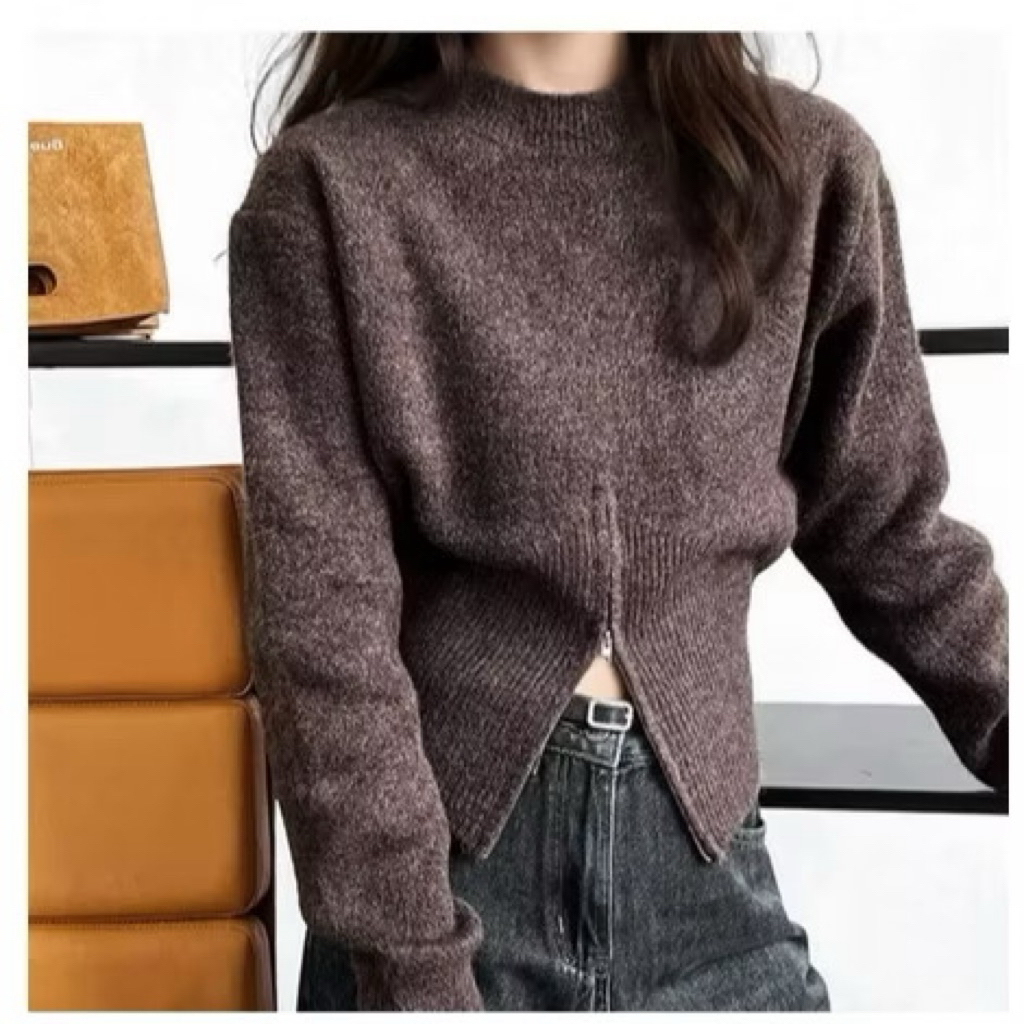 Cila Sweater Rajut Ziper Bawah Atasan Baju Wanita O neck Tebal Premium Korean style Premium