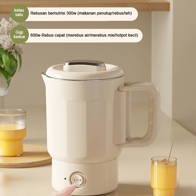 Teko Listrik Lipat Portable 800ml 600W Anti Panas Cepat Mendidih untuk Traveling, Kantor & Kos