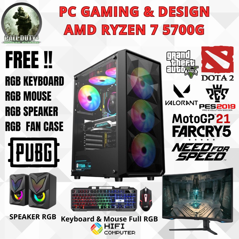 PC GAMING & DESIGN FULLSET AMD RYZEN 7 5700G RAM 32GB SSD NVME 1TB VGA RADEON 2GB SIAP PAKAI