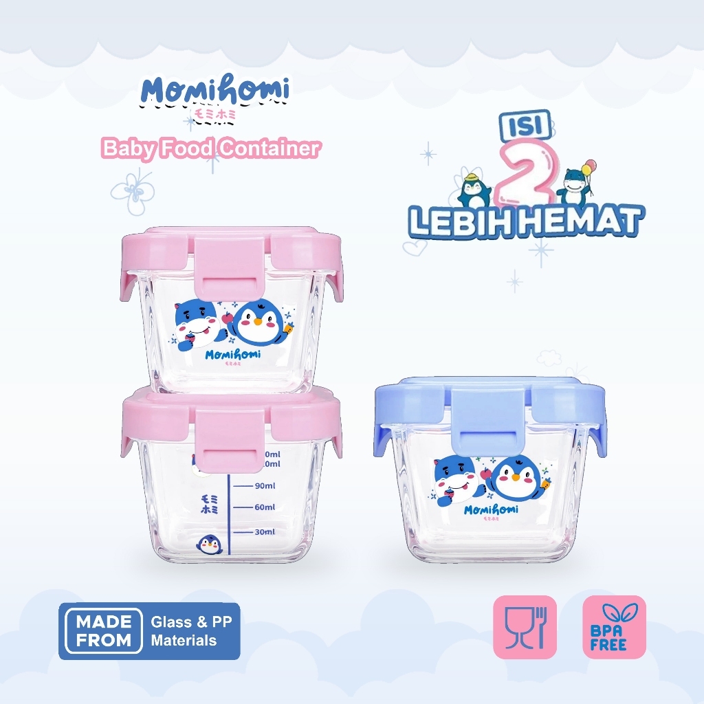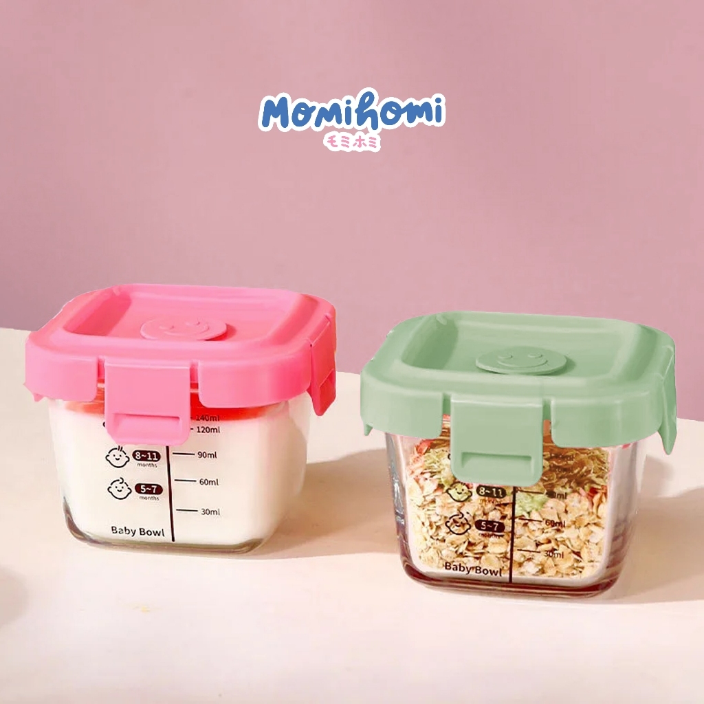 (KACA LEBIH TEBAL) MOMI HOMI AUTHORIZED Baby Food Container Glass 3003 Tempat Penyimpanan Makanan Bayi Mpasi Food Contai