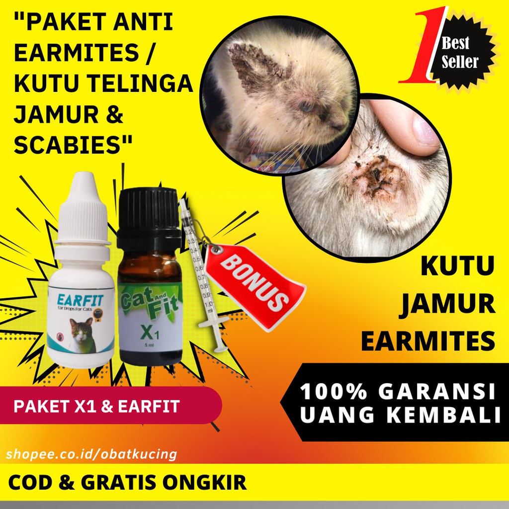 Paket Ampuh Obat Anti Kutu Kucing Jamur Earmites Scabies Cat And Fit X1 Earfit