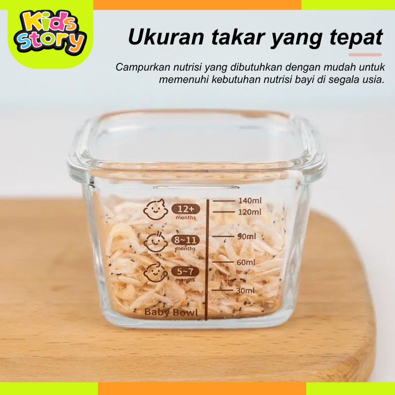 Peralatan Makan Bayi Tempat MPASI Anti Tumpah Tempat Makan Bayi Kontainer Kaca Wadah Snack Mpasi Tahan Panas Microwave P