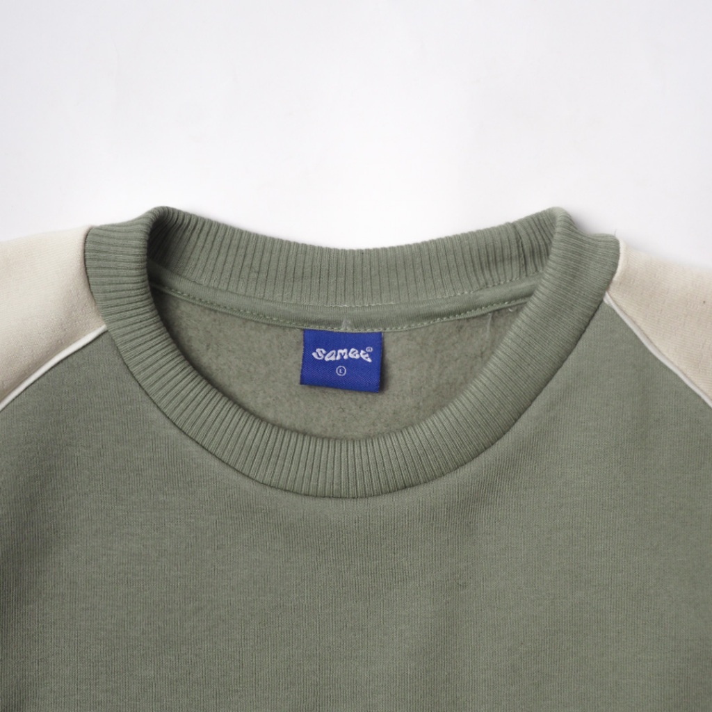 Samee Boxy Crewneck Oversize kombinasi Olive / Broken White