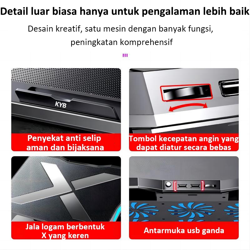 2025 Kyb Cooling Pad Laptop Gaming Kipas Pendingin Laptop Portable 8 Kipas