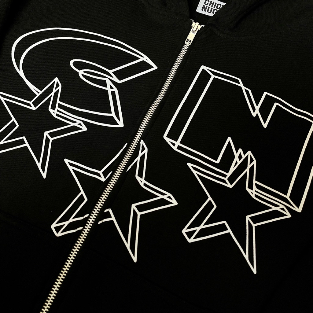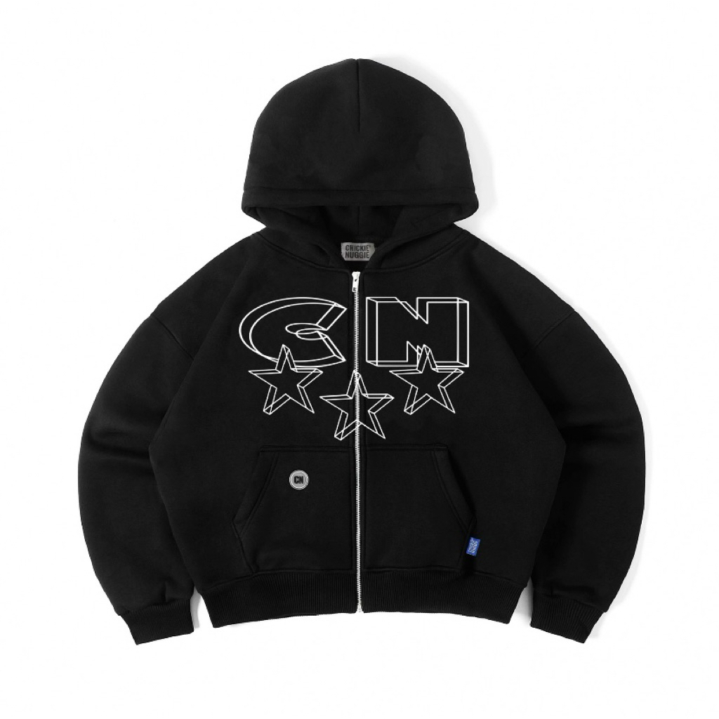 CN Line Star Zipper Boxy Hoodie - Black - Chickie Nuggie