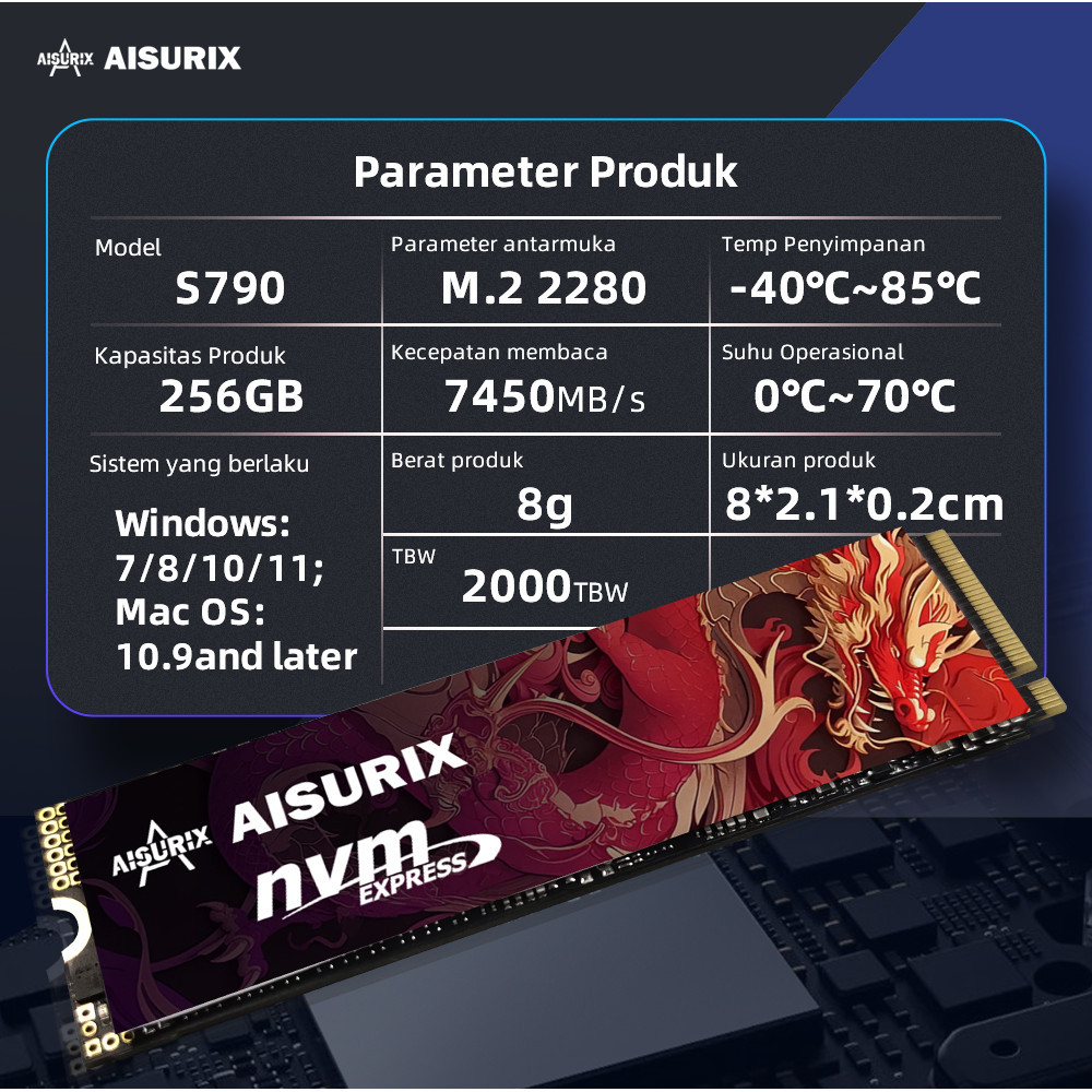 Aisurix Ssd M.2 Nvme 256Gb M2 2280 Nvme 7450Mb