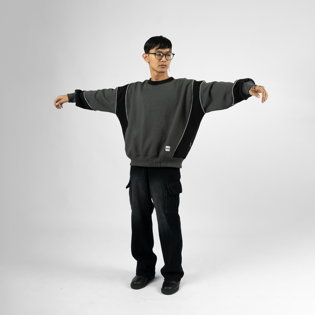 HLPD WeirdWorld Jaket Crewneck Boxy Kombinasi Pria Wanita Sweater Clea - Polos Grey