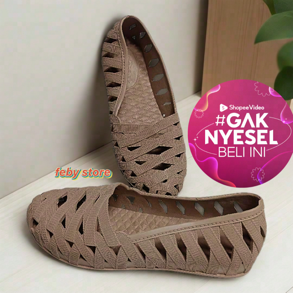 Sepatu Wanita Flat Karet Balet Q400 Anti Slip