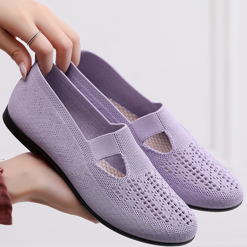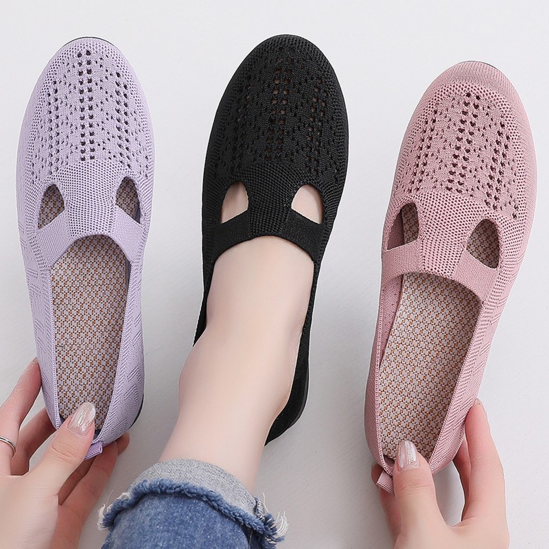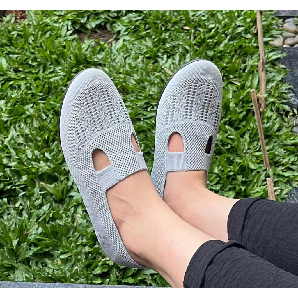 Sepatu Flat Shoes Rajut Wanita Slip On Sol Karet Anti Licin Casual Formal Jalan Santai Tahan Air