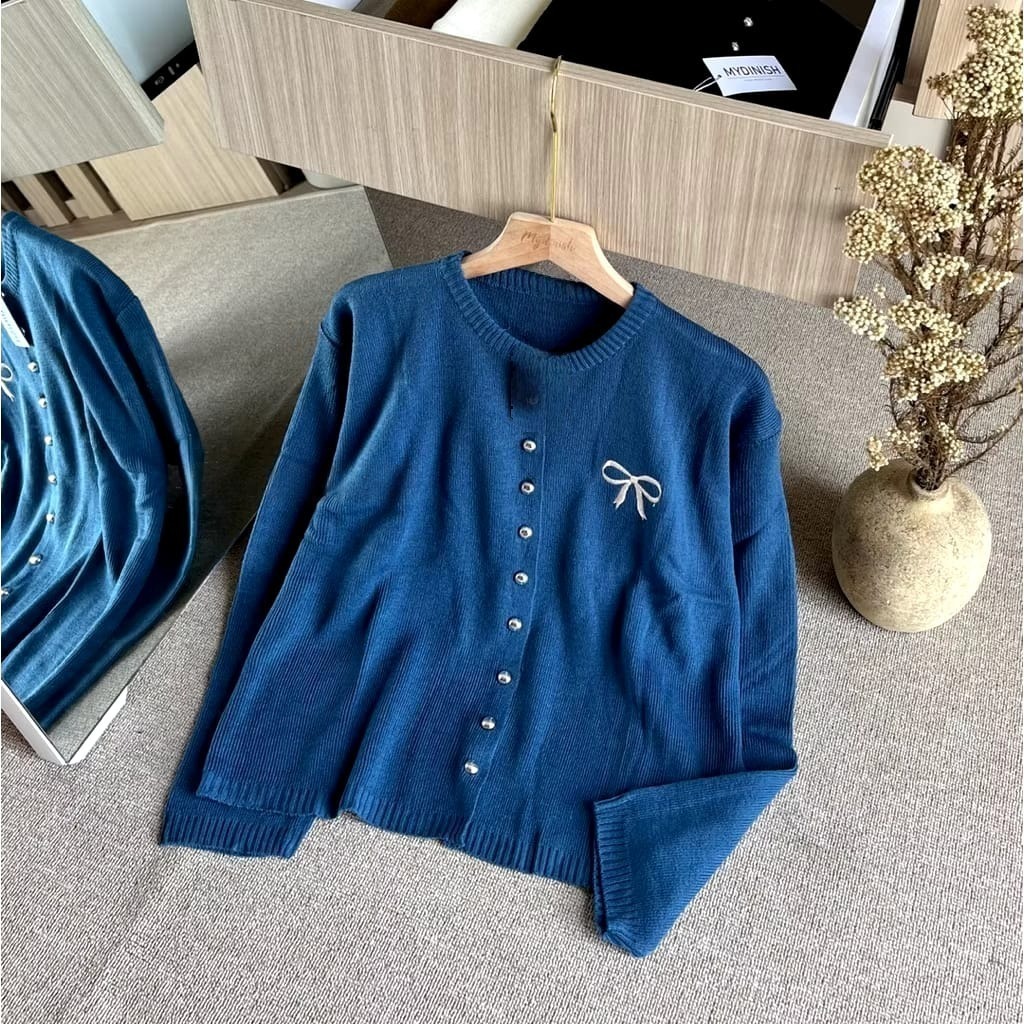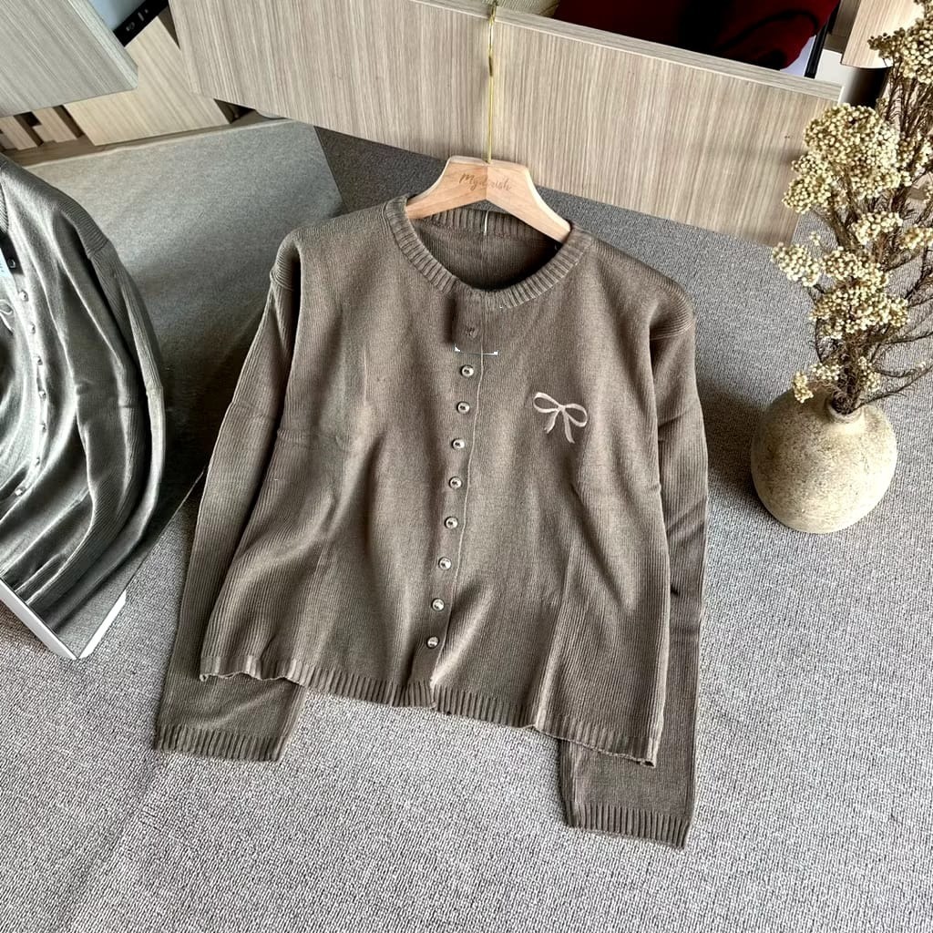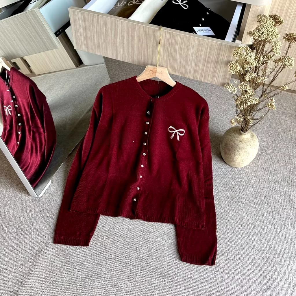 Knitwear Korean Style Cardigan Rajut Wanita Variasi Pita Bordir Tops Oversize