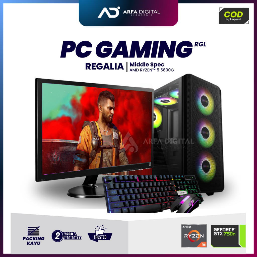 PC Gaming Fullset AMD Ryzen 5 5600GT SSD 512GB Lengkap LED 24 Inch Ram 32GB Siap Pakai REGALIA