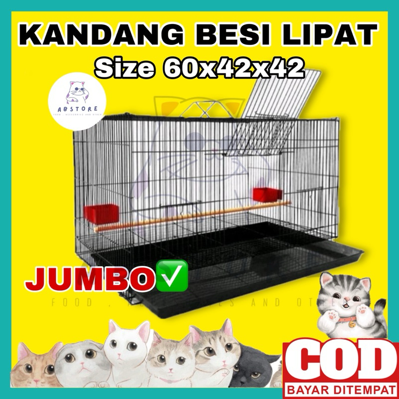 Kandang Besi Lipat Jumbo 60X42X42 Kandang Kucing Anjing Kelinci Musang Kandang Love Bird Sangkar Kandang K