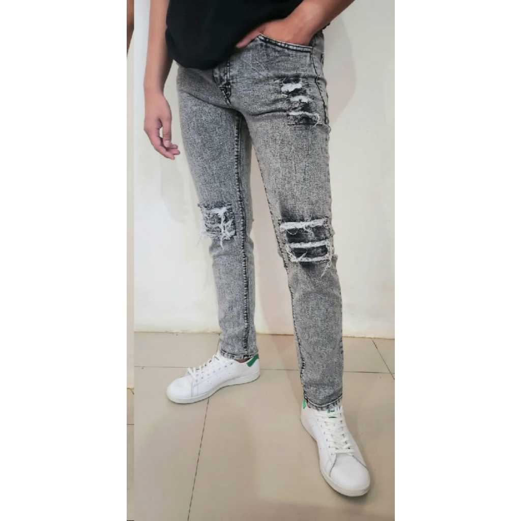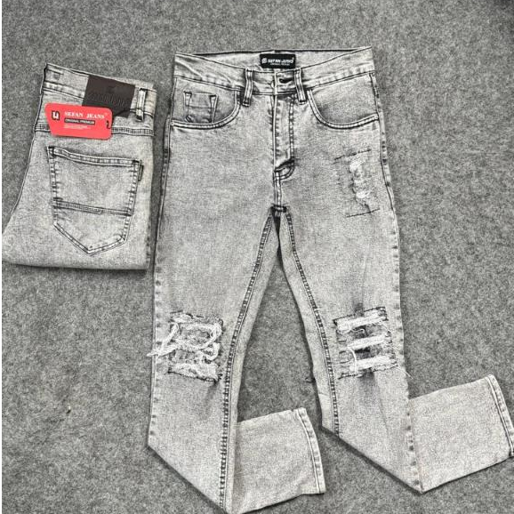 Sepan Jeans Sefan Jeans Snow Grey Bikers Bordir Patc Emblem ukuran 27 sampe 34 ready stock