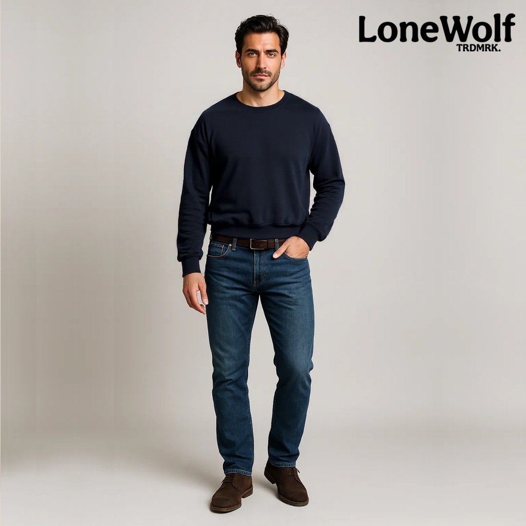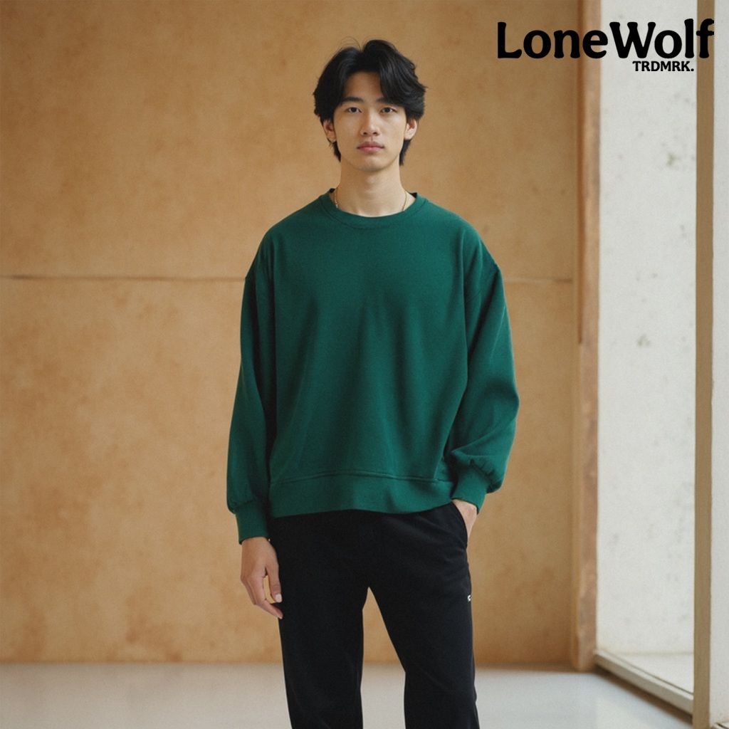 LoneWolf - Katun Basic Crewneck Boxy Oversized Black Pria | Sweater Tebal 300gsm Premium Cotton