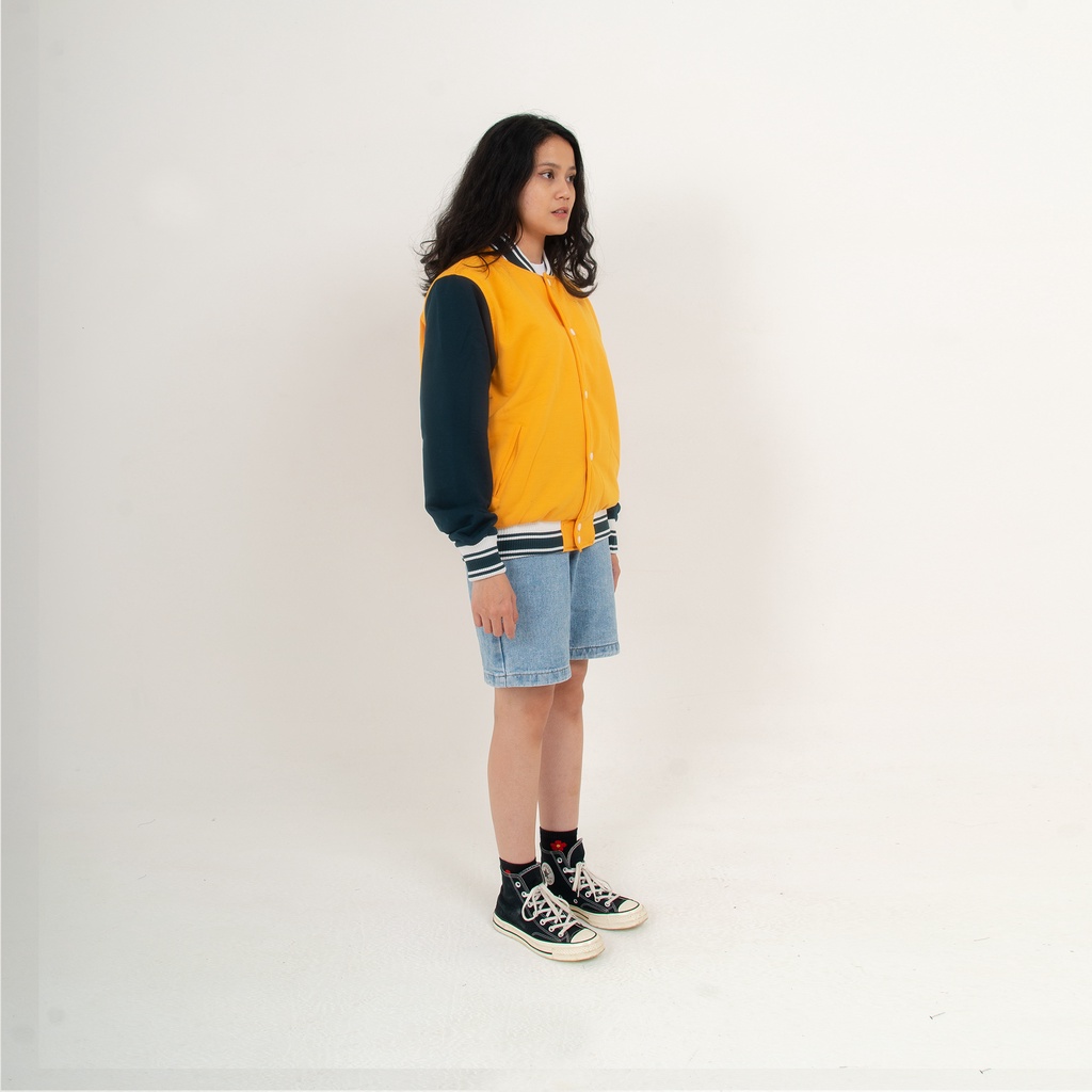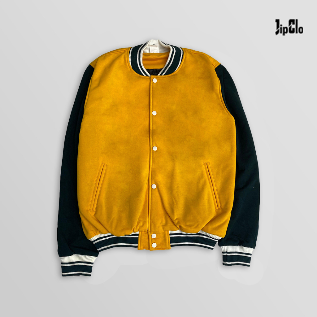 FLASH SALE JipClo Jaket Varsity Baseball Unisex Pria Wanita Safron Green Bottle