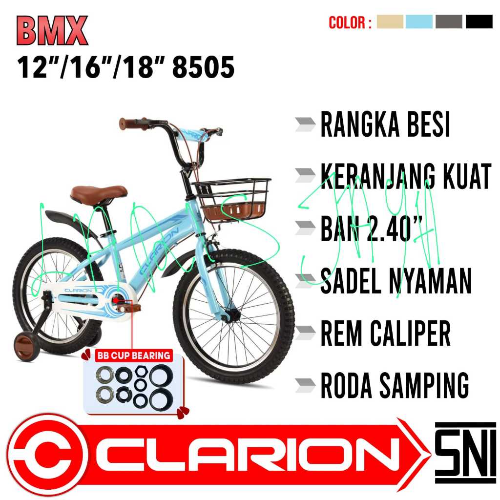 Sepeda Anak Bmx Clarion 8505 Ukuran 12 / 16 / 18 Inch Ada Keranjang Best Quality