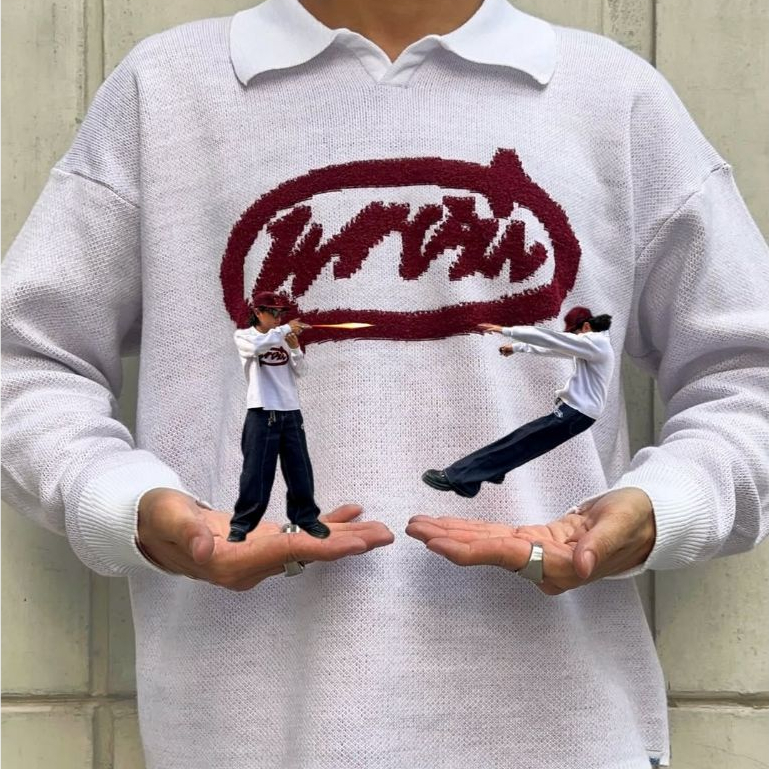 WPCO - Knitwear BOXY Daisy White Football Knit Switer Unisex /Sweater Rajut Pria & Wanita