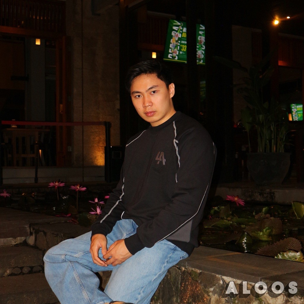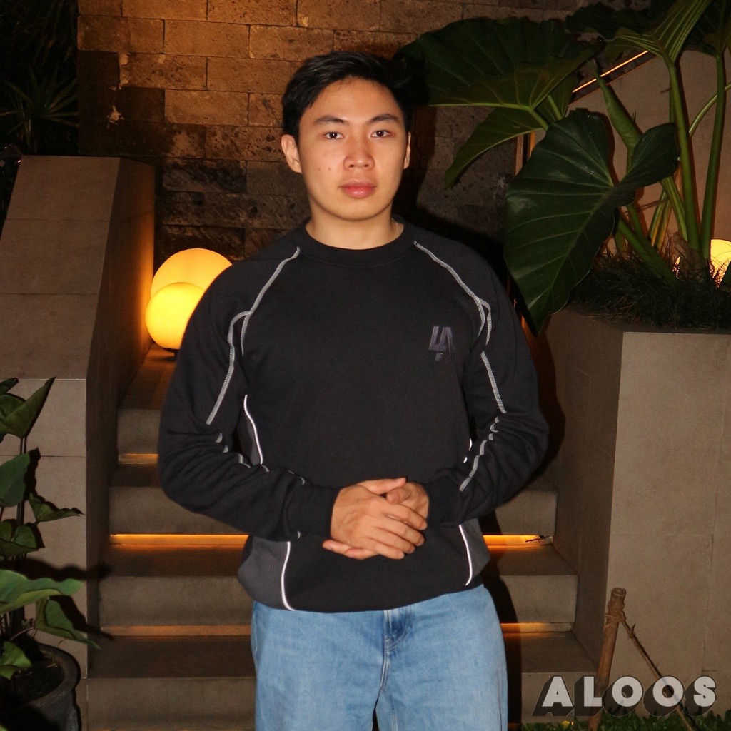 Aloos Crewneck Overdeck + White Line Black Charcoal | Sweater Bordir Kombinasi Katun Fleece 280 Gsm