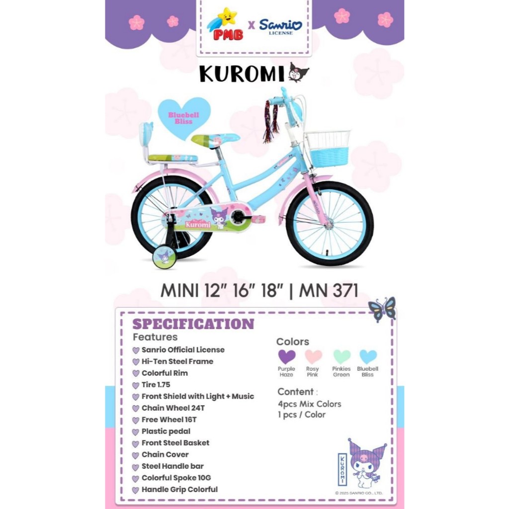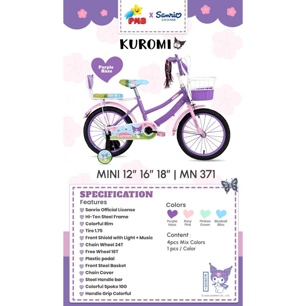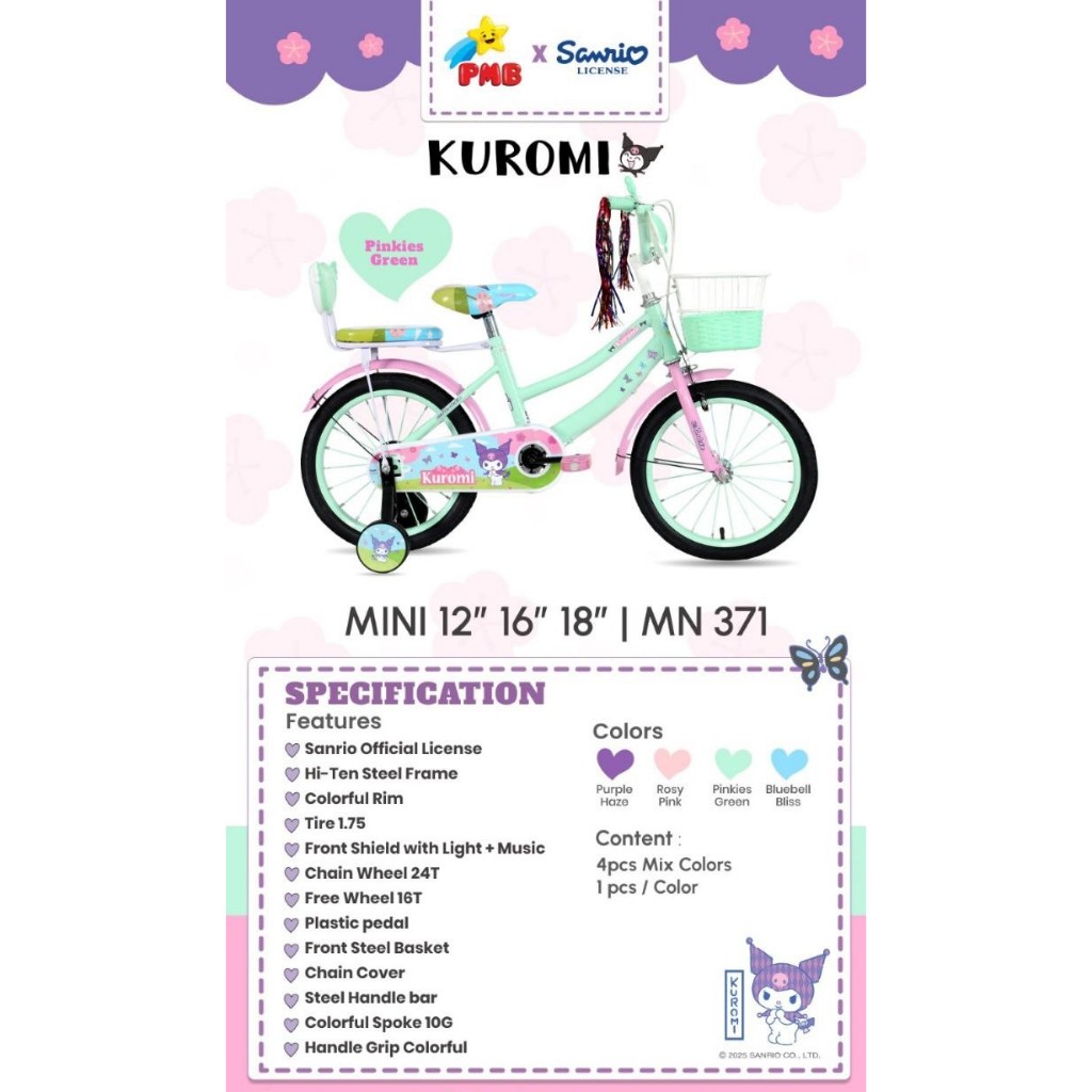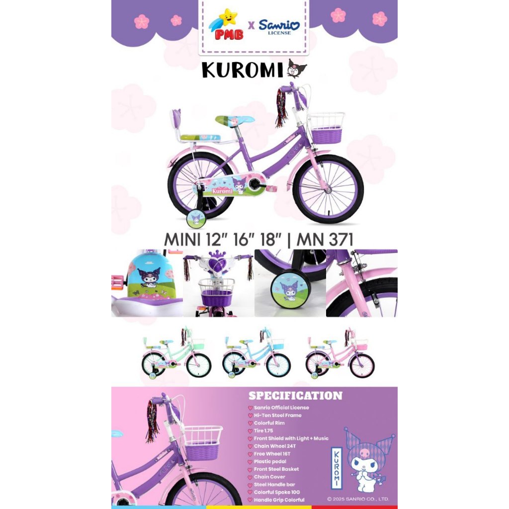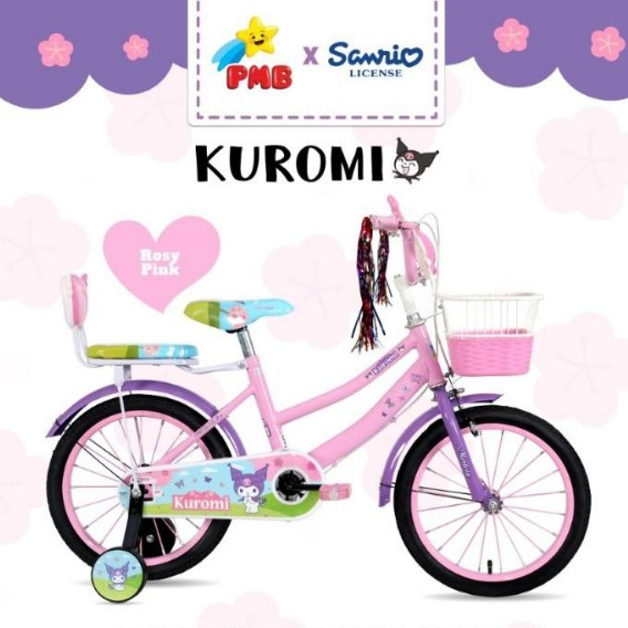 SEPEDA ANAK PEREMPUAN MORTEIN MN 371 KUROMI UKURAN 12 16 18 INCH ADA KERANJANG DAN RODA BANTU