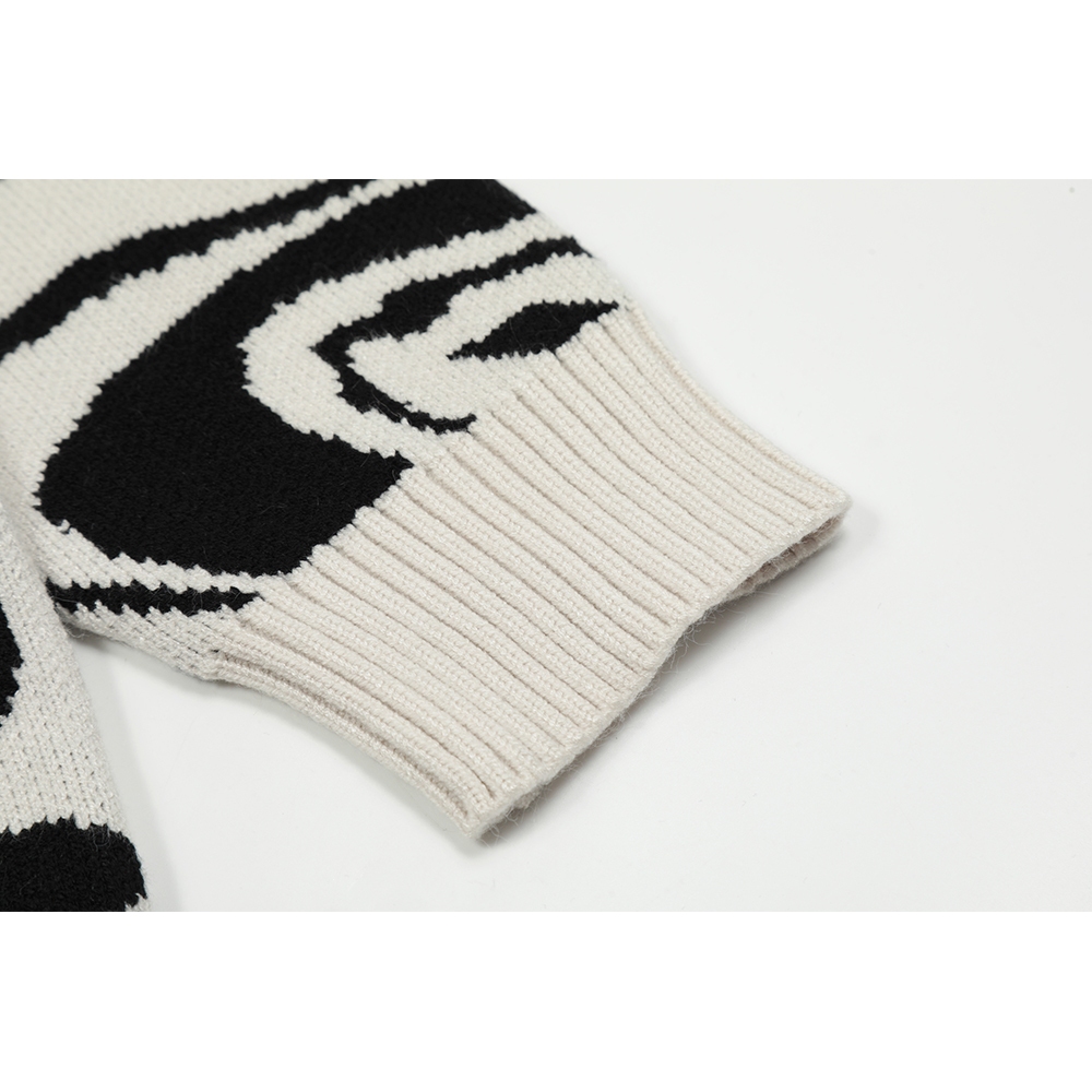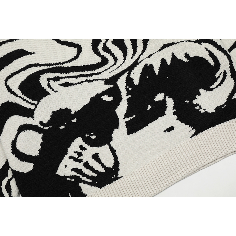 Dark Icon Pullover Men's Sweater Round Neck Loose Sweaters for Men Women Knitwear Black Beige