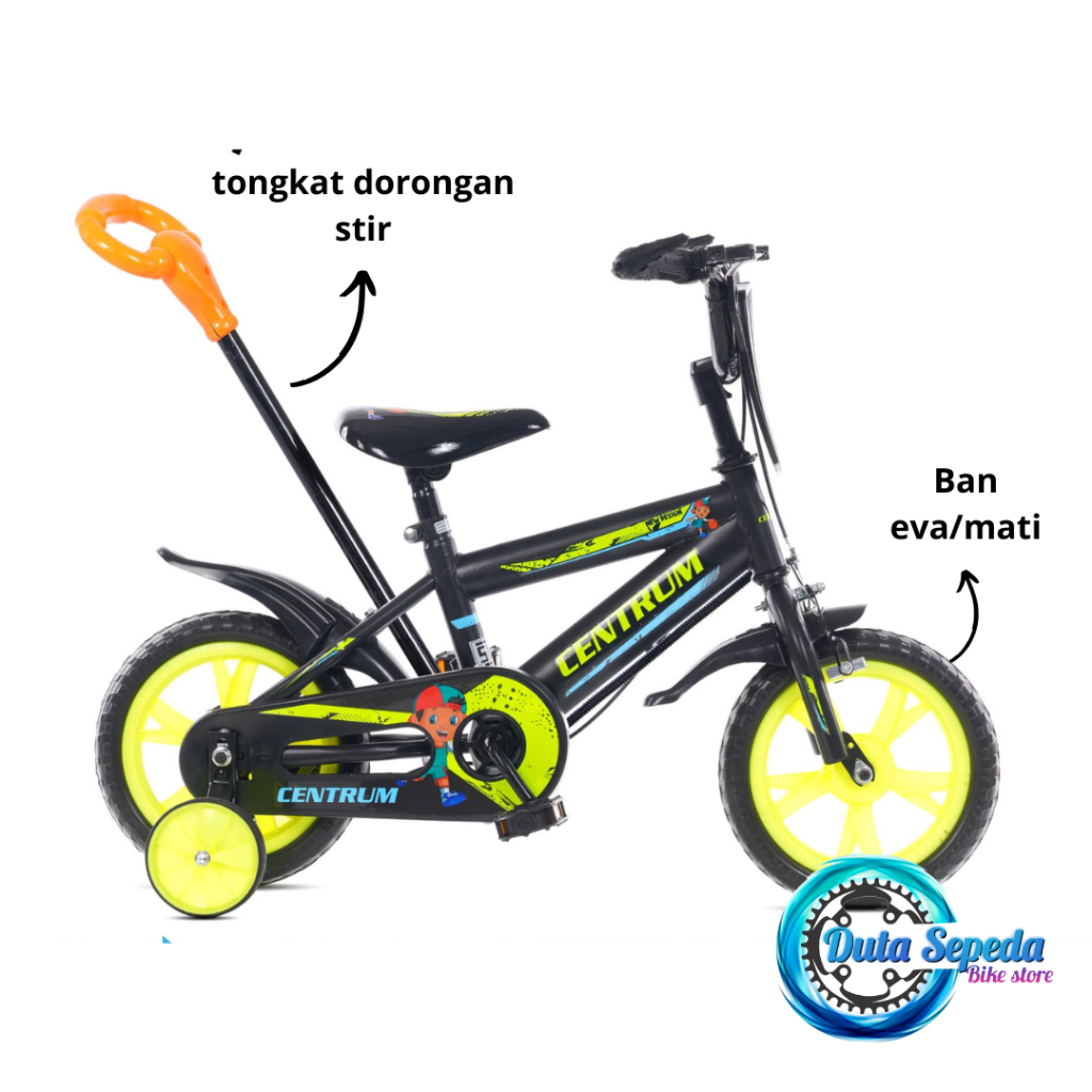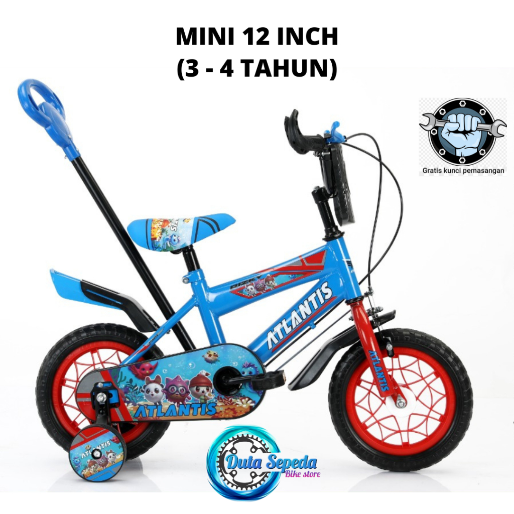 sepeda anak laki laki ukuran 12 inch dorongan dan tanpa dorongan usia 2 sampai 4 tahun