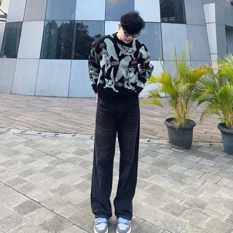The Don's House GVARKA BOXY BLACK - Sweater Crewneck Knitwear Bahan Rajut Hitam Pria Wanita Fleece