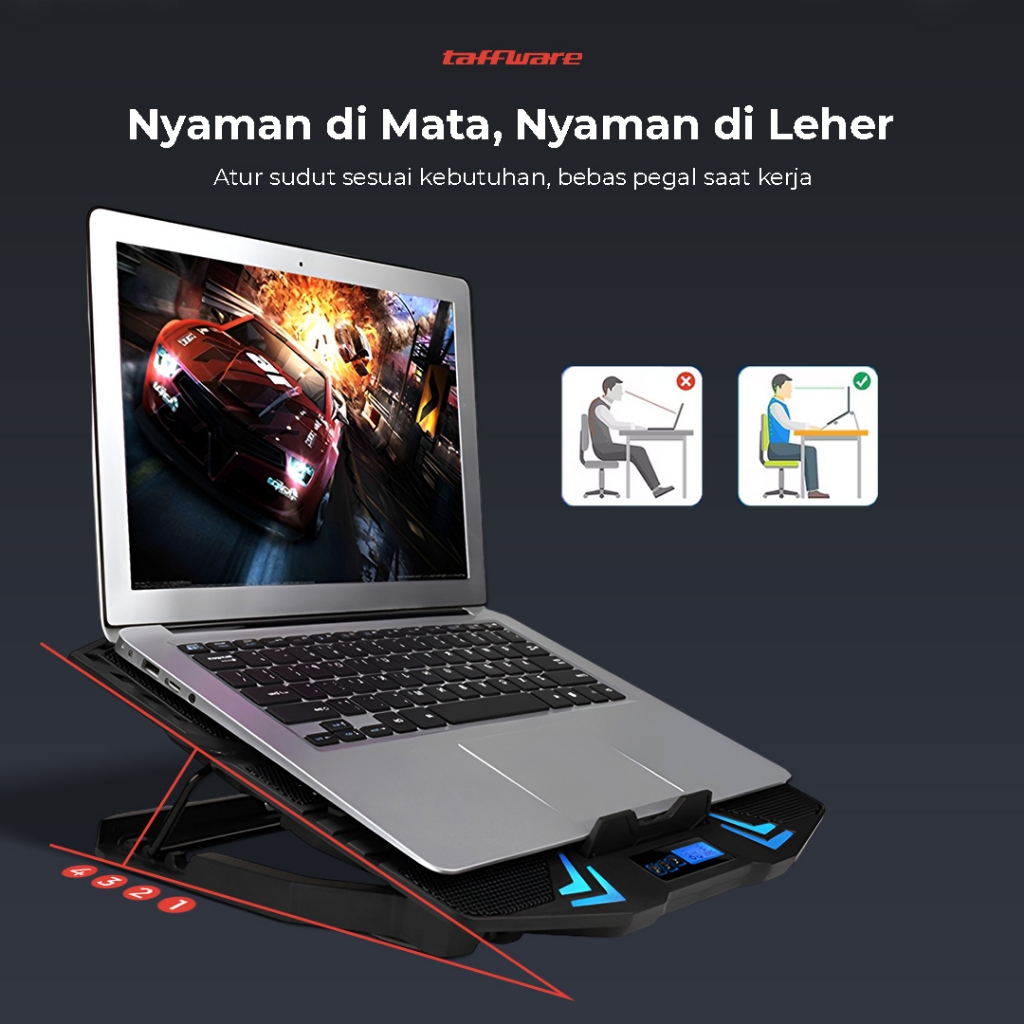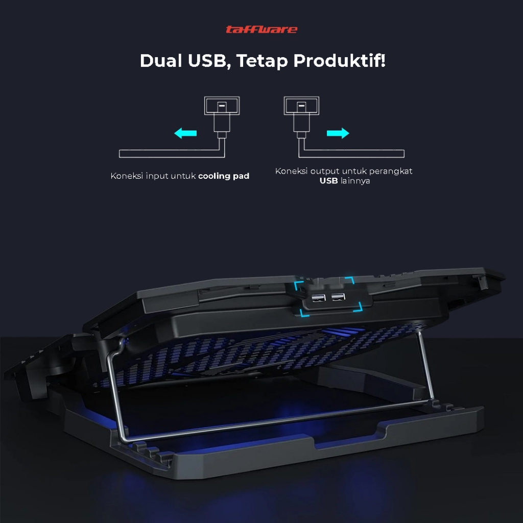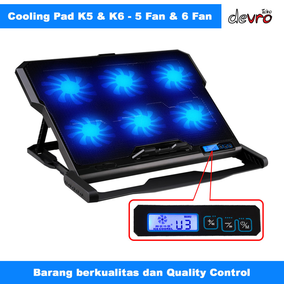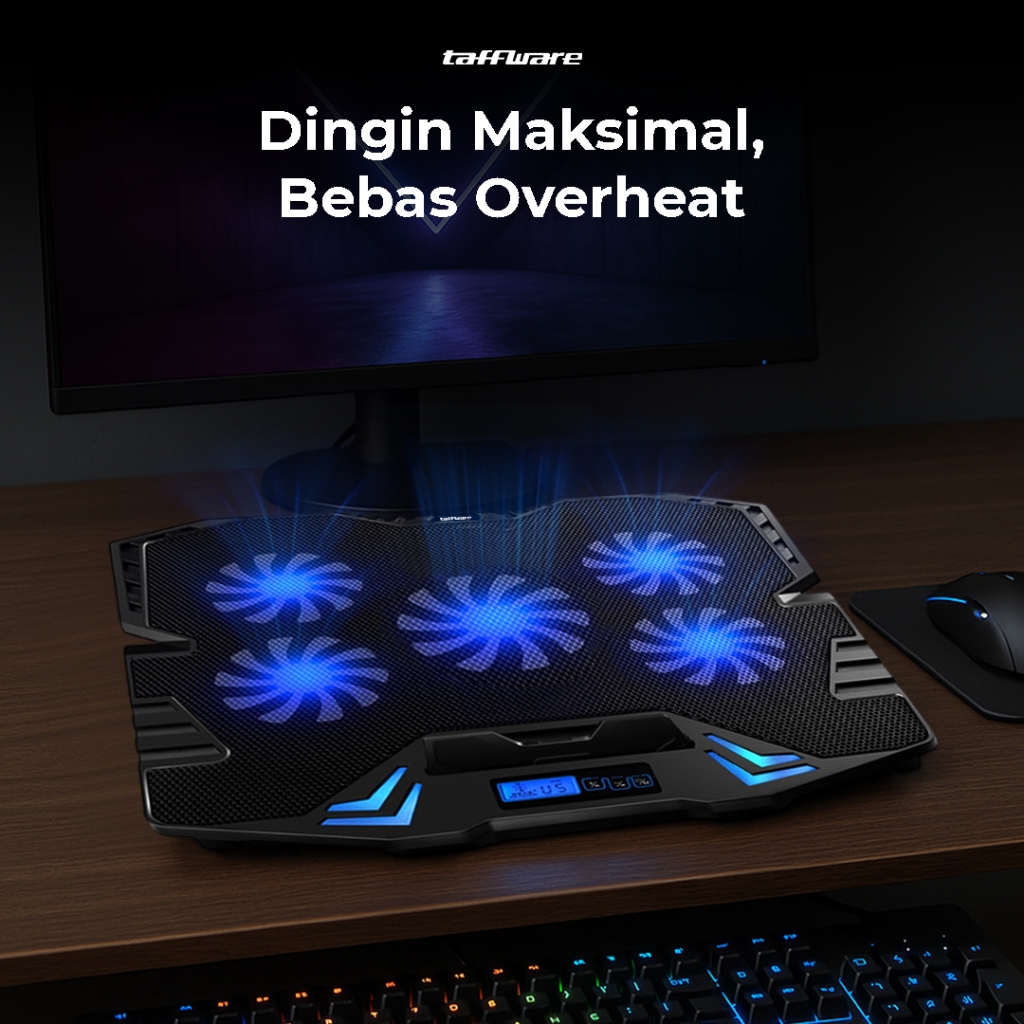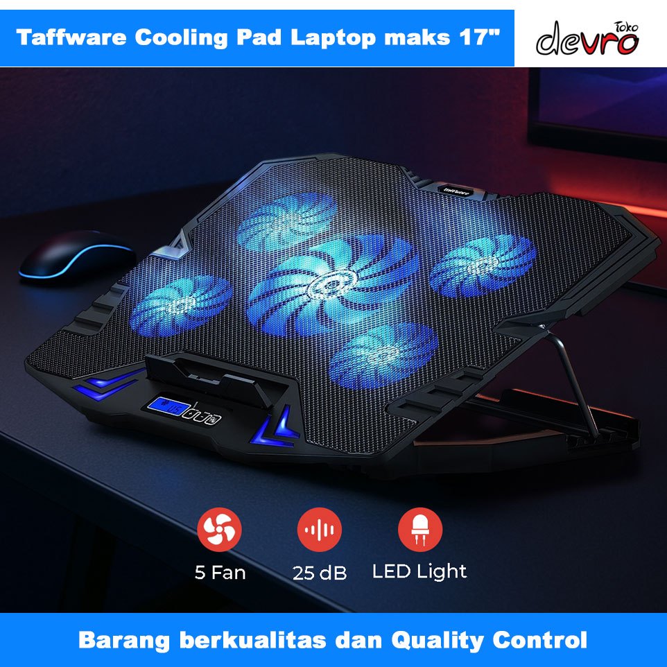 Cooling Pad Laptop Gaming Kipas Pendingin 5 Fan Maks 17 Inch - Taffware Fan K5