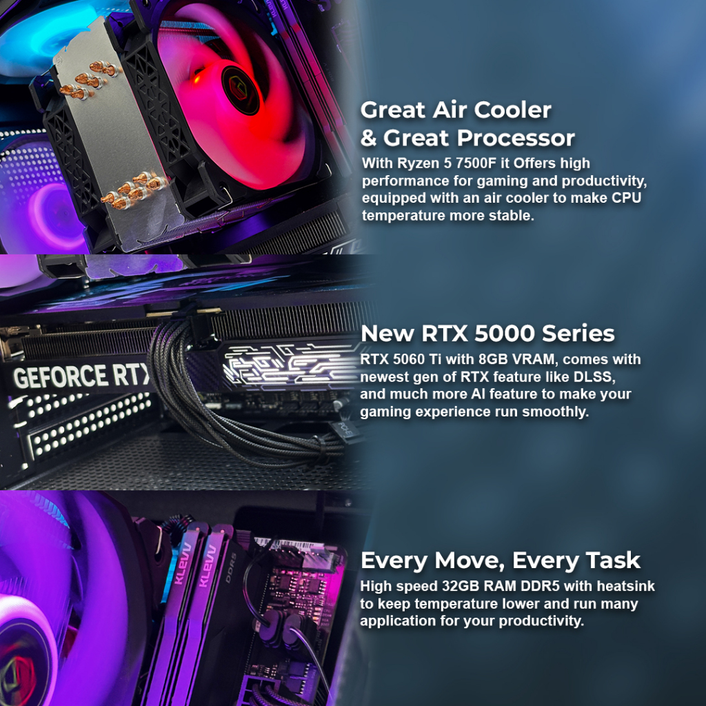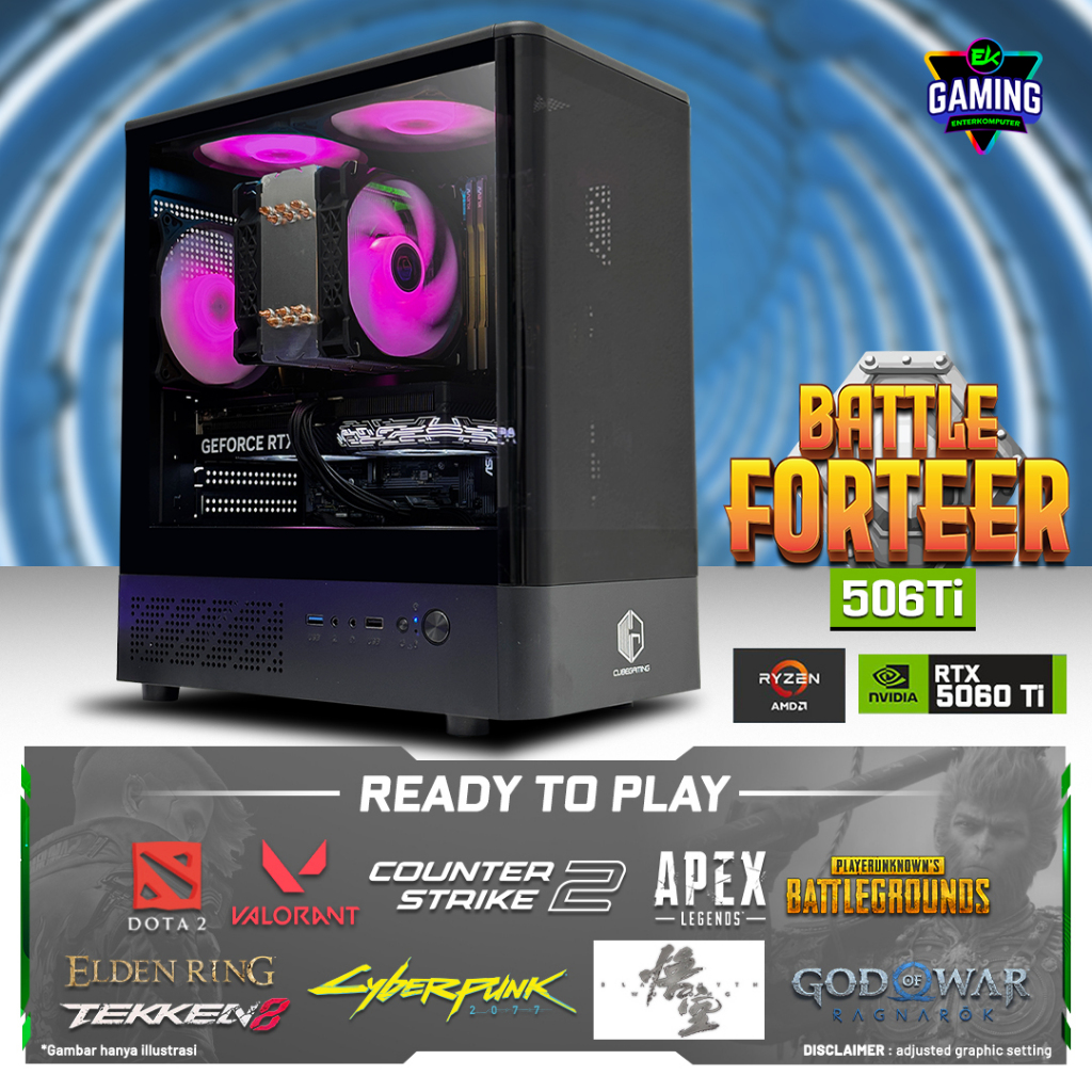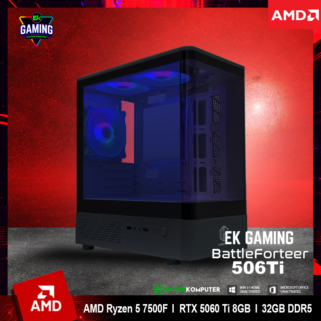 EK Gaming BattleForteer 506Ti - PC Rakitan Gaming Ryzen 5 7500F RTX 5060 Ti 8GB RAM DDR5 32GB - Enter Komputer