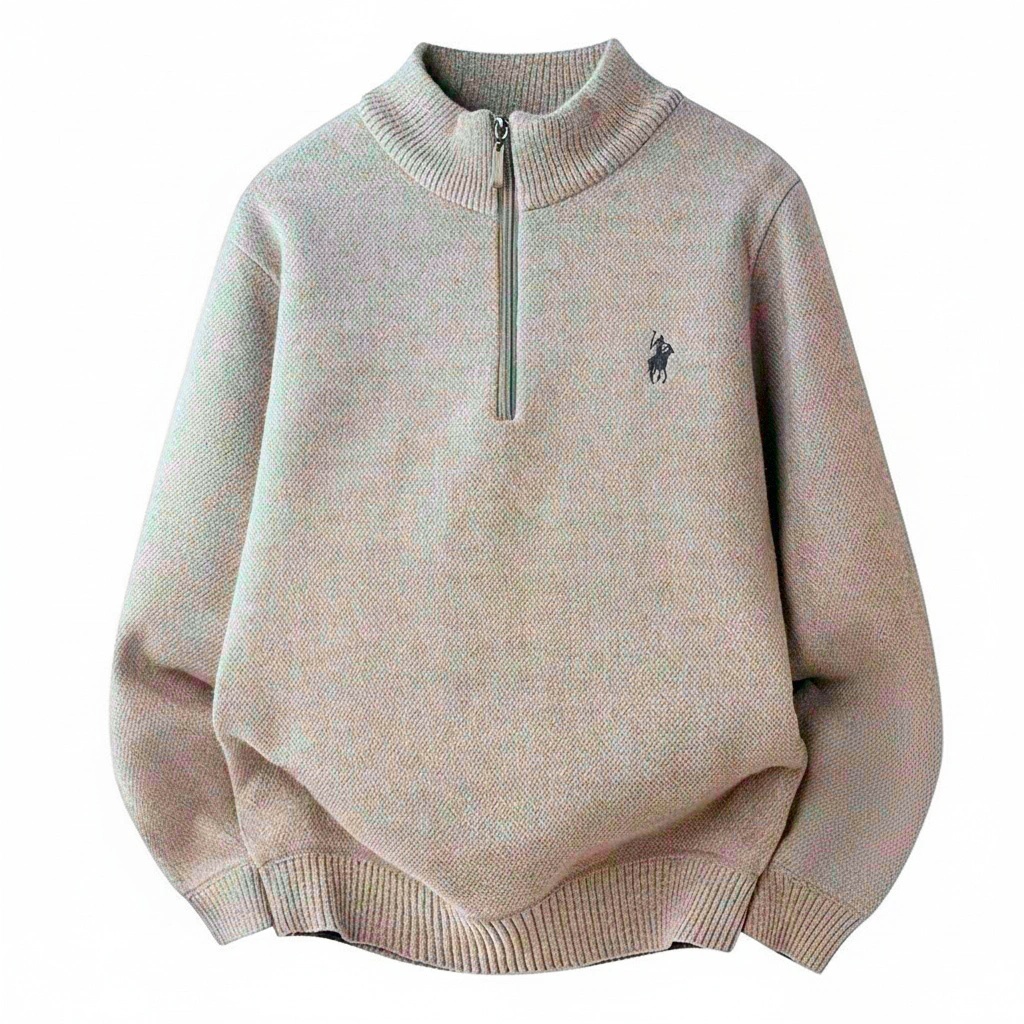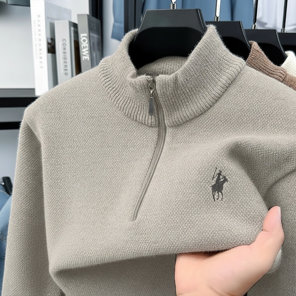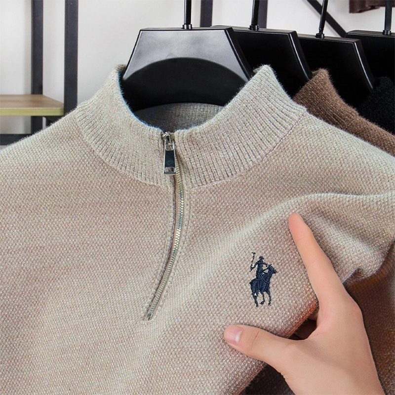 X-Gent Sweater Rajut Pria Half Zipper Tebal Leher Tinggi dengan Bordir Kuda – Ukuran M–3XL