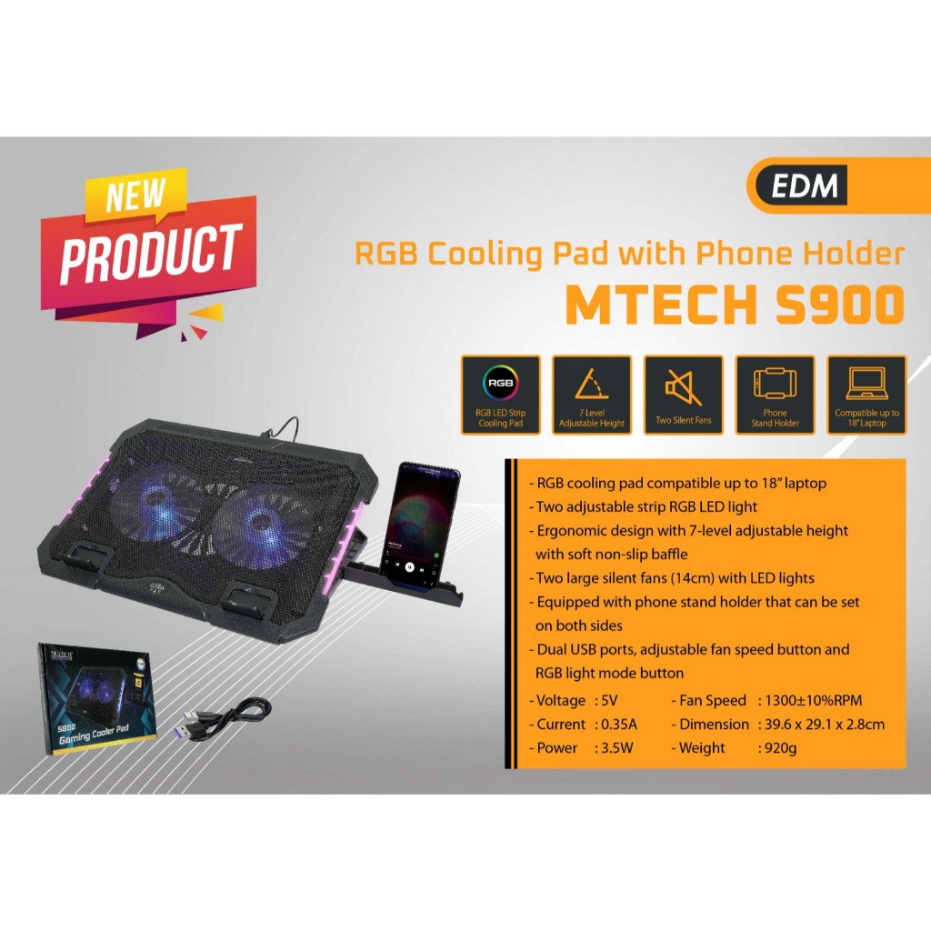Cooling Pad Laptop With Phone Holder Max 18 Inchi Silent Kipas Pendingin Laptop Rgb S900