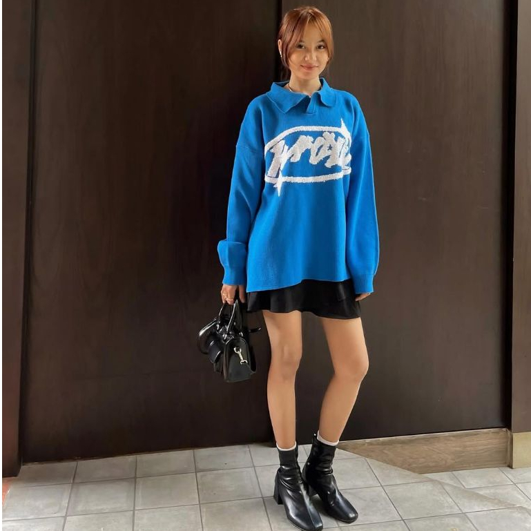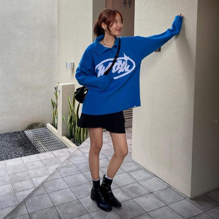 WP Company - Knitwear BOXY Delight Blue Knit Switer Unisex /Sweater Rajut Pria & Wanita