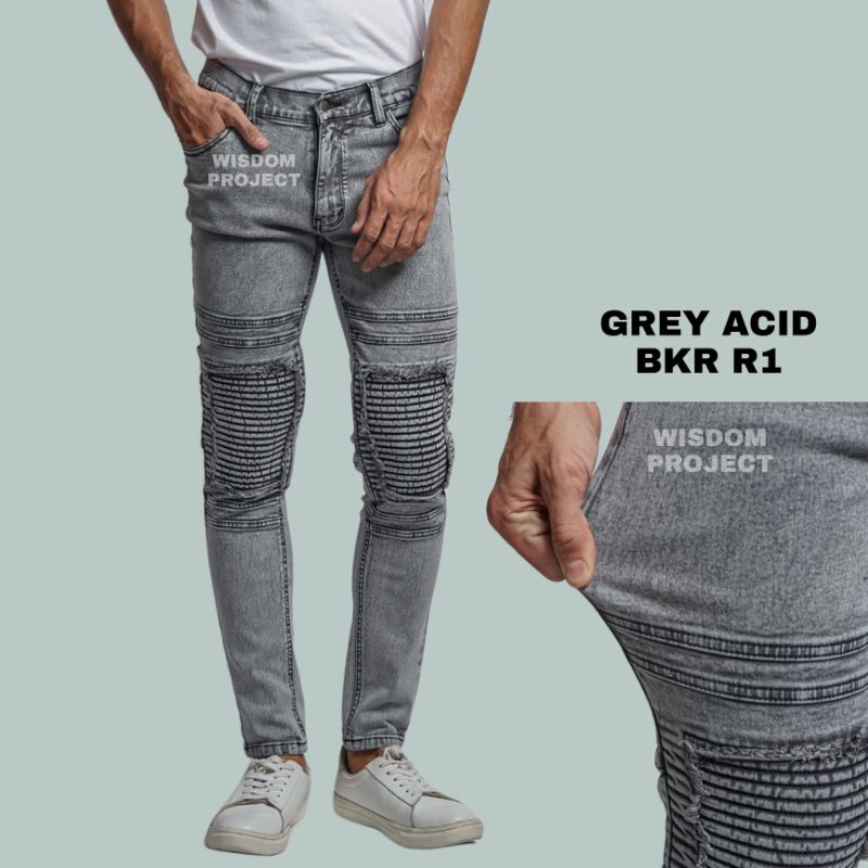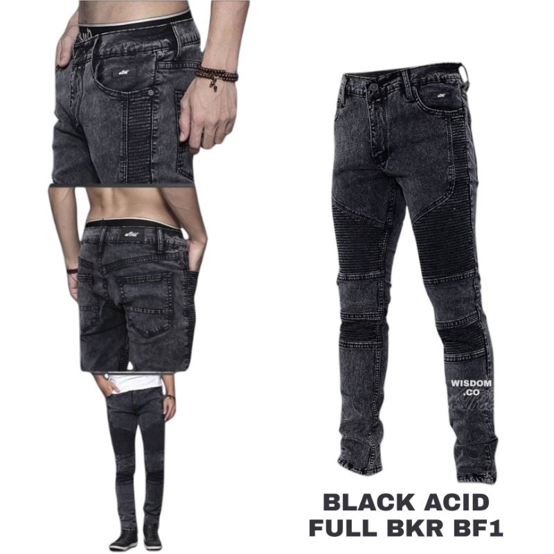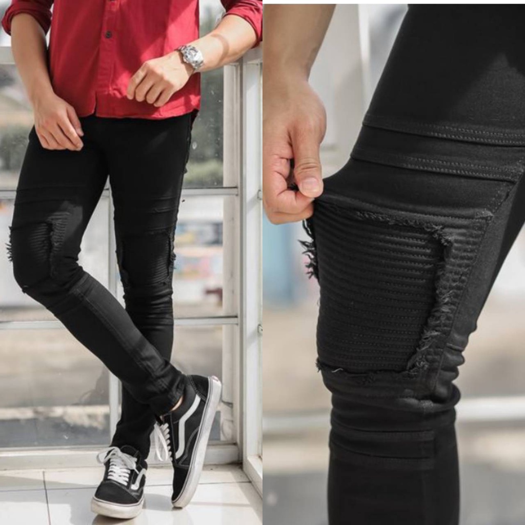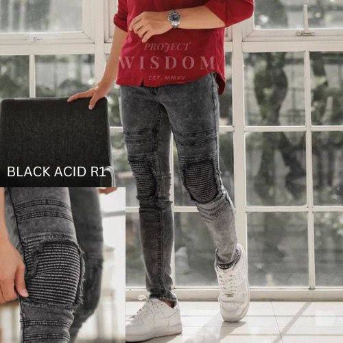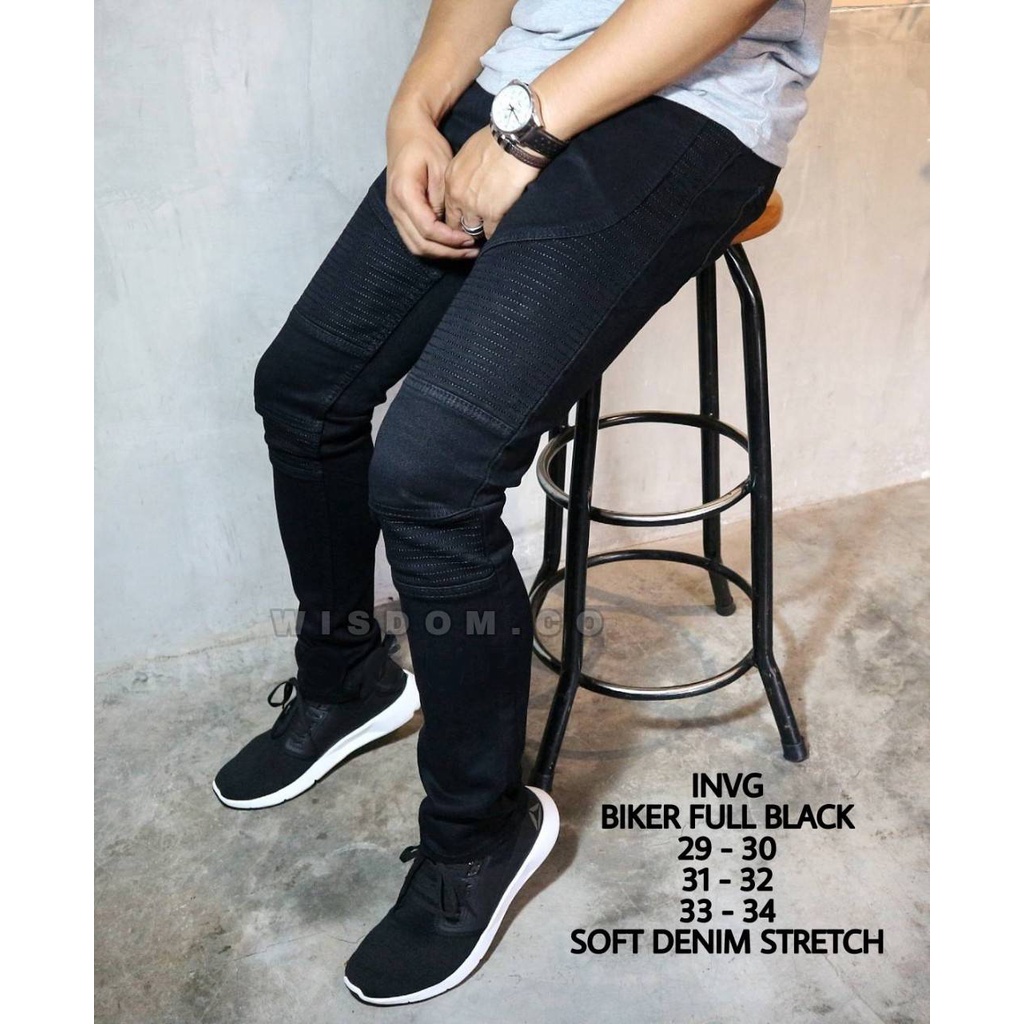 LEOPED - CELANA JEANS BIKERS SKINNY RIPPED PRIA BLACK WASHED TERLARIS - MAT SOTFJEANS -ORI