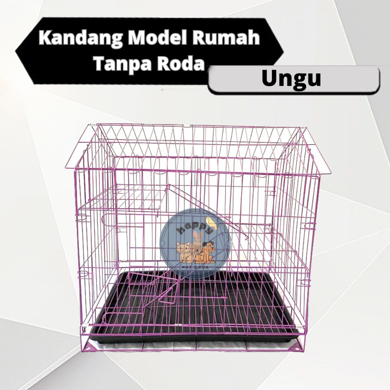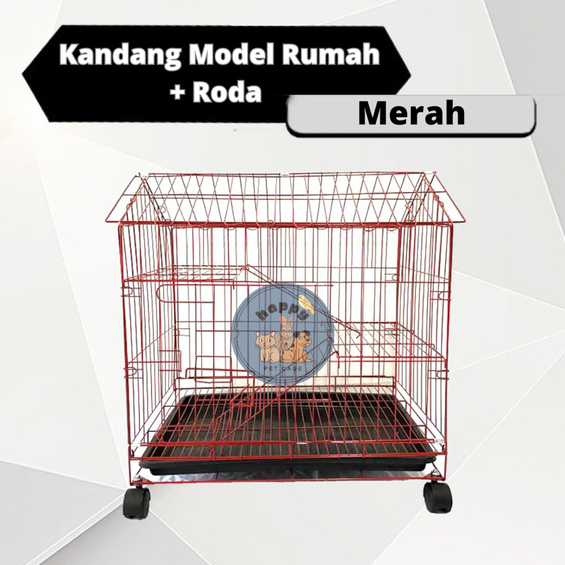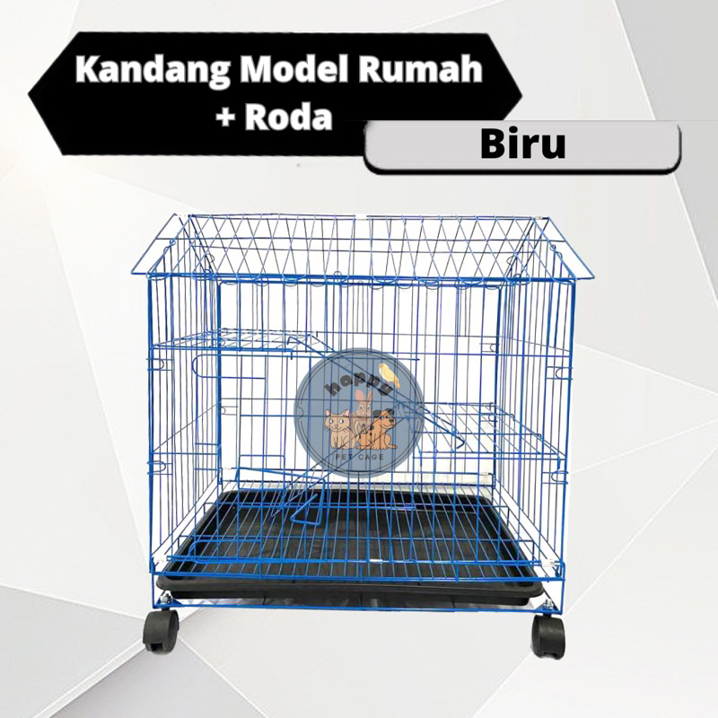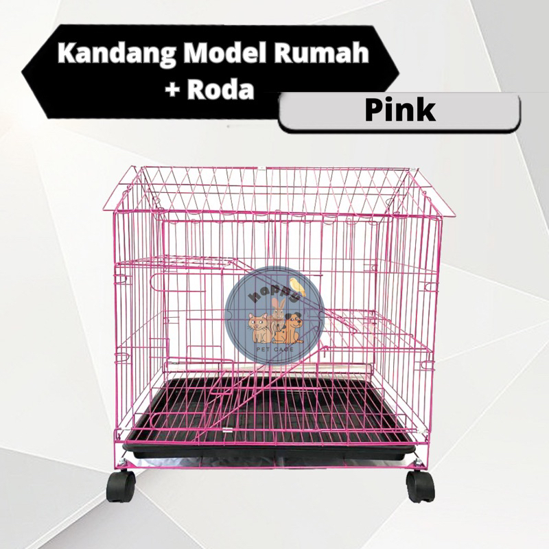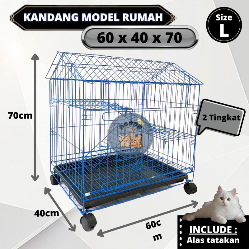 Kandang Kucing Model Rumah 60X40X70 2 Tingkat + Roda/ Kandang Rumah Size L/ Kandang Besi Lipat/ Kandang Kucing Anjing Ke