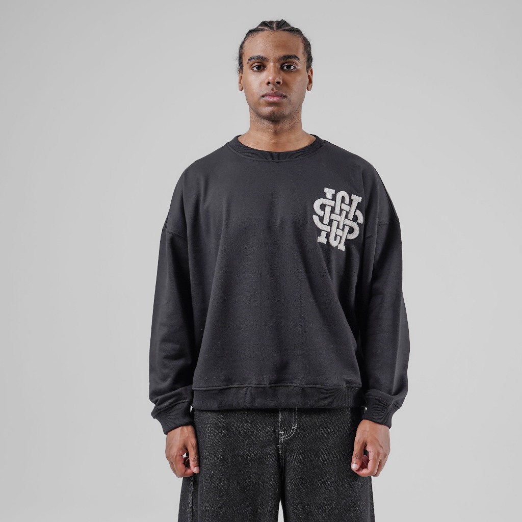 House of Smith Sweater Crewneck Boxy Pria - Griss Terry Sweatshirt Boxy Black